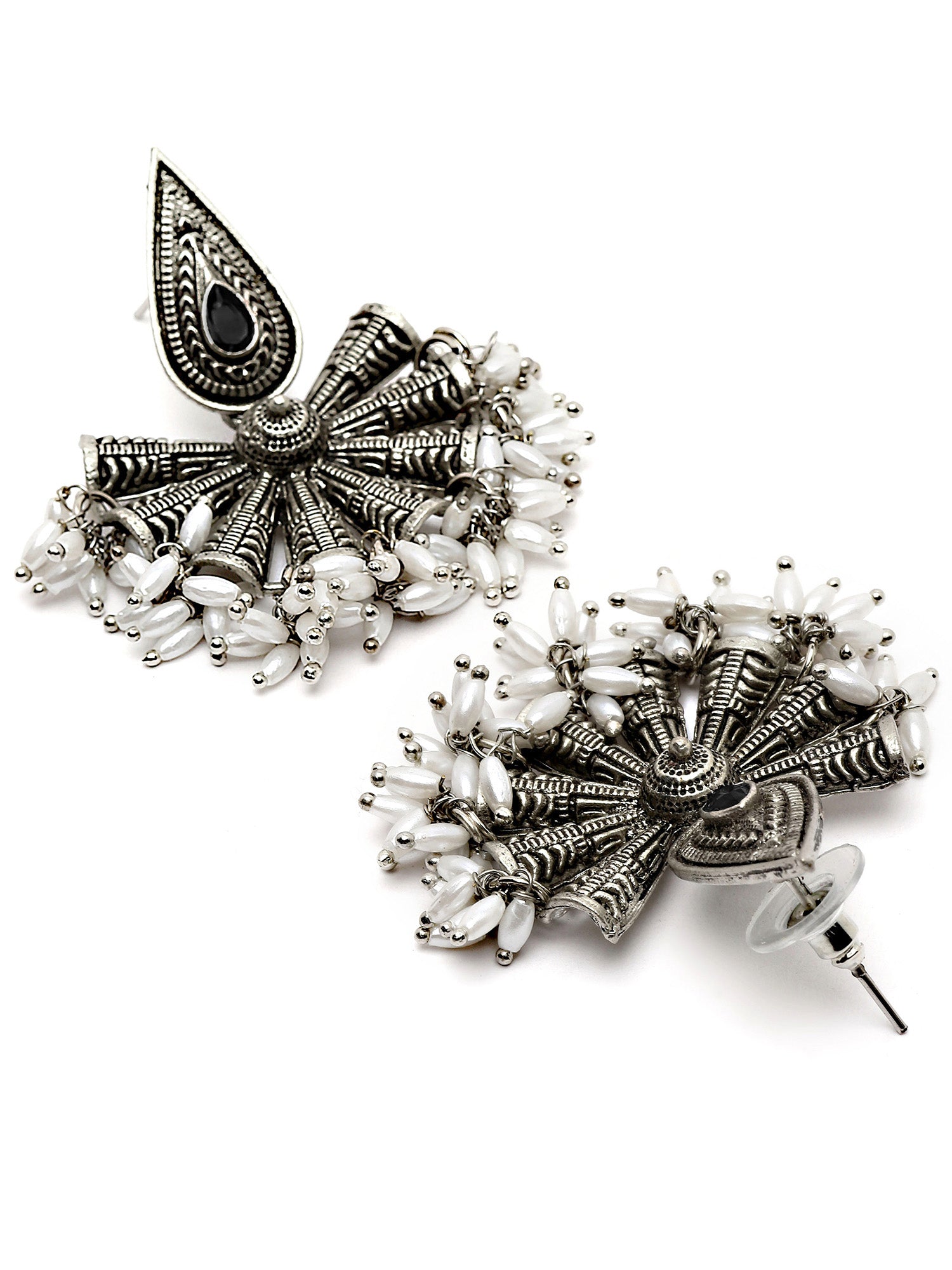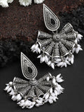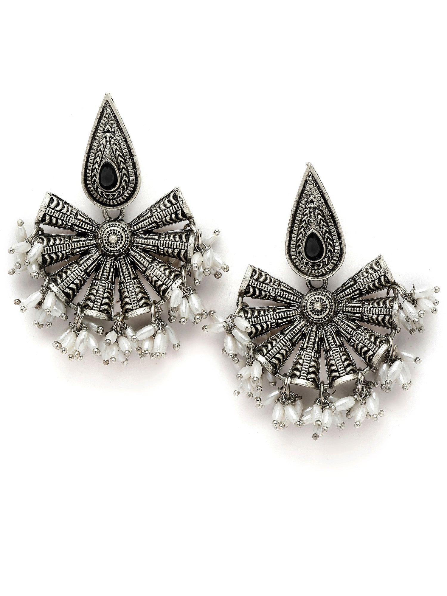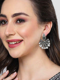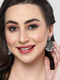 Karatcart Drop Shape Oxidised Silver Black Stone Dangler Earring for Women