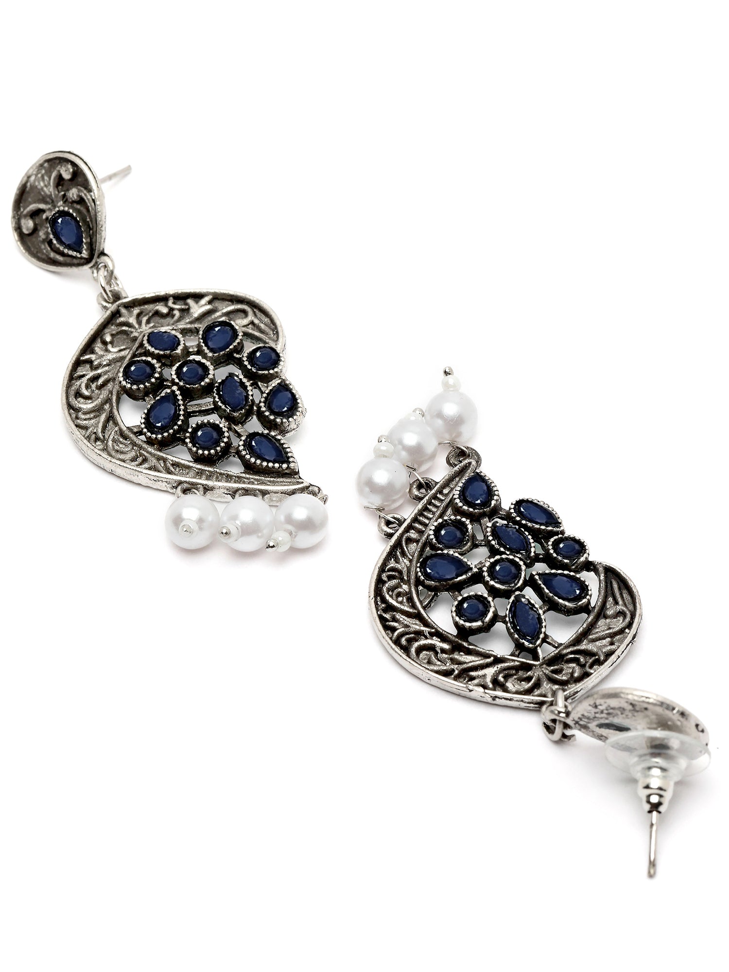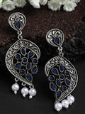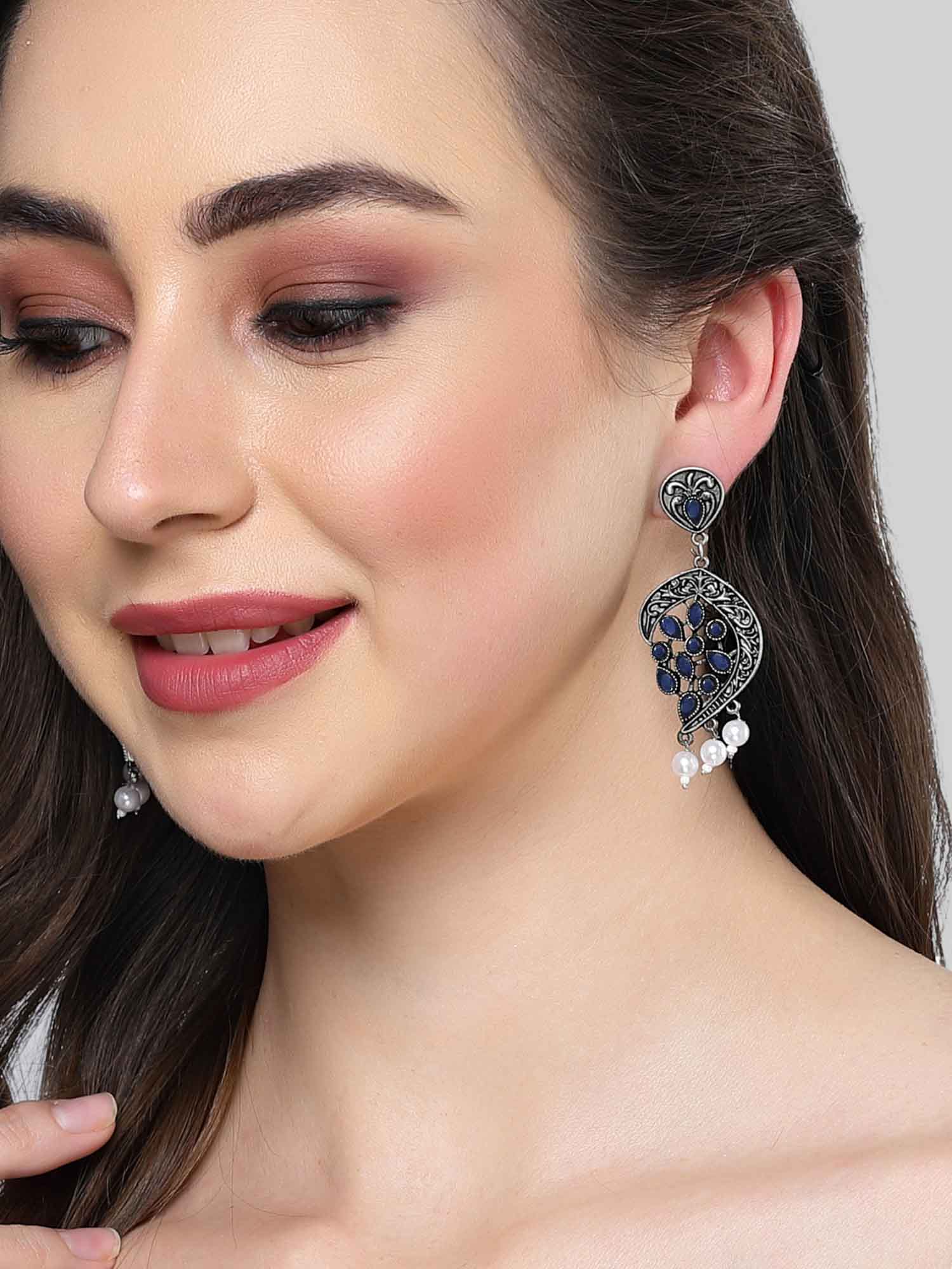Karatcart Oxidised-Silver Blue Stone Drop Earring for Women