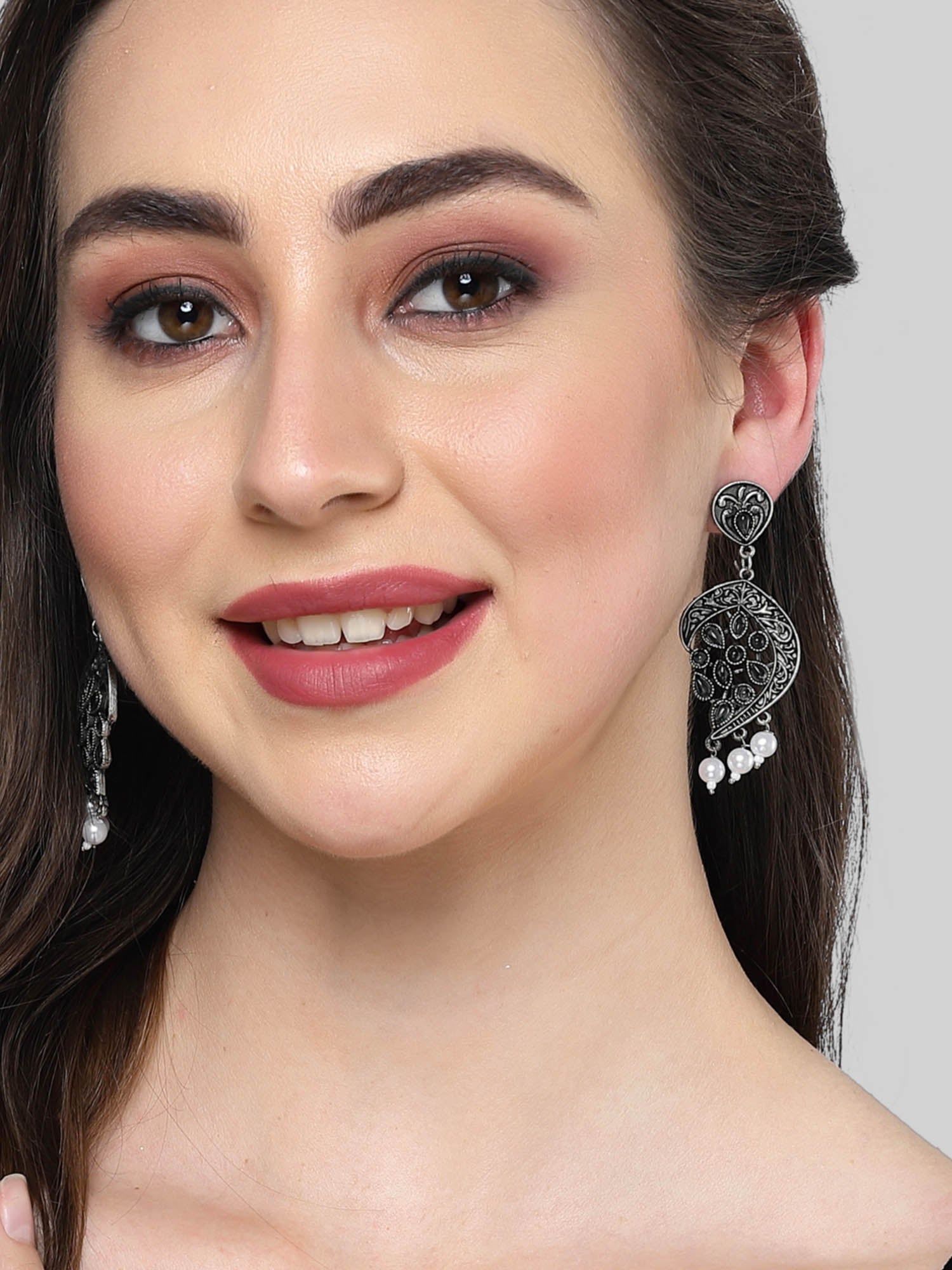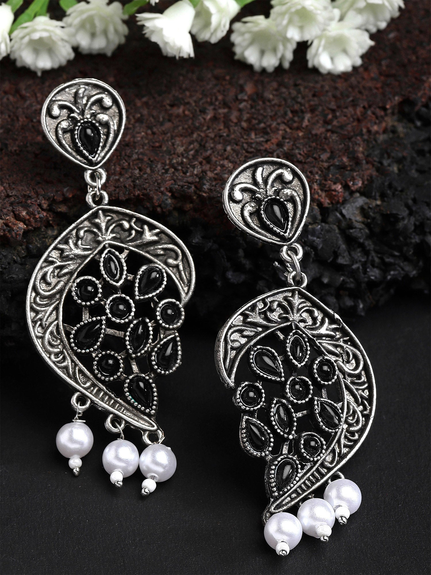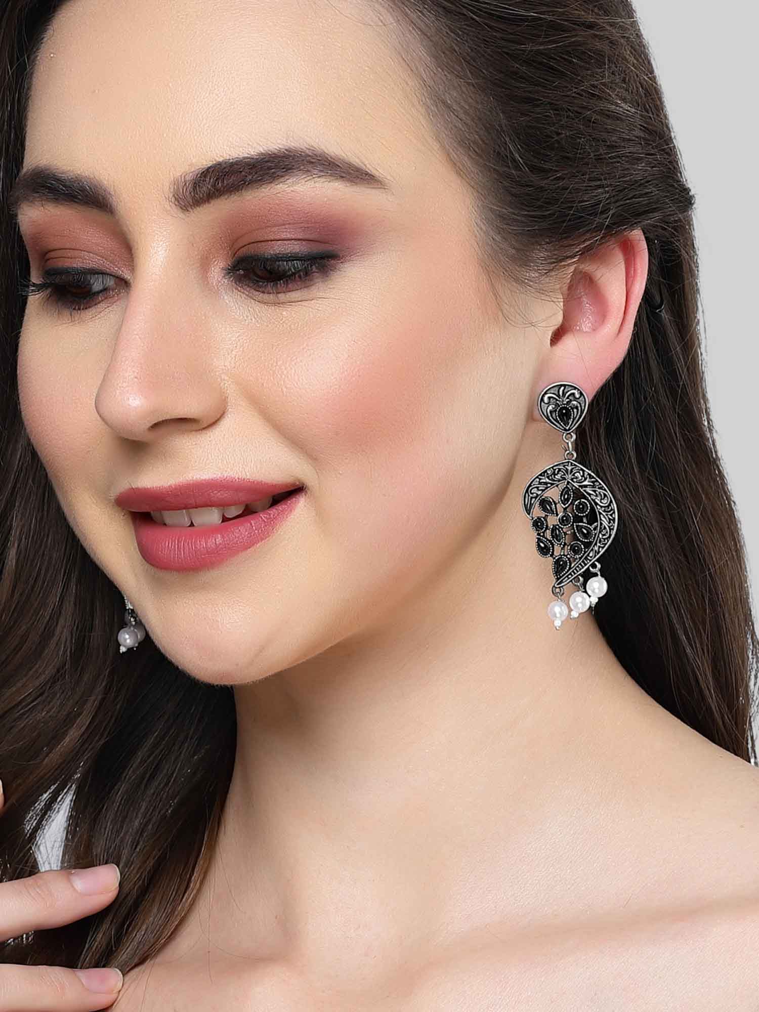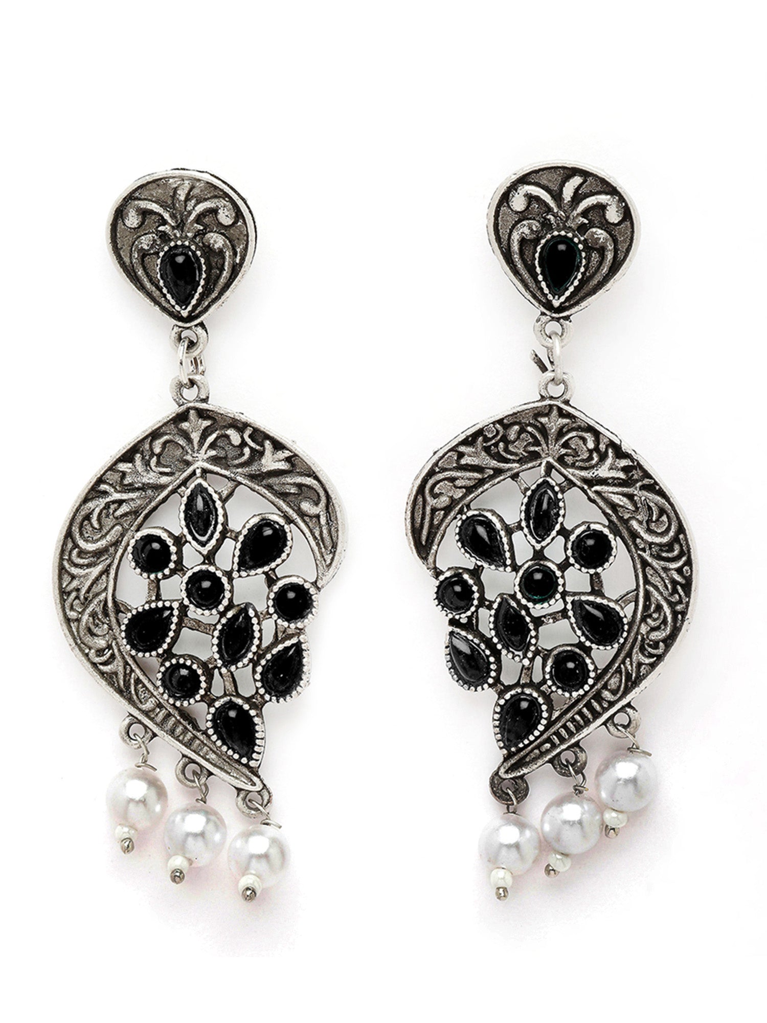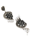 Karatcart Oxidised-Silver Black Stone Drop Earring for Women