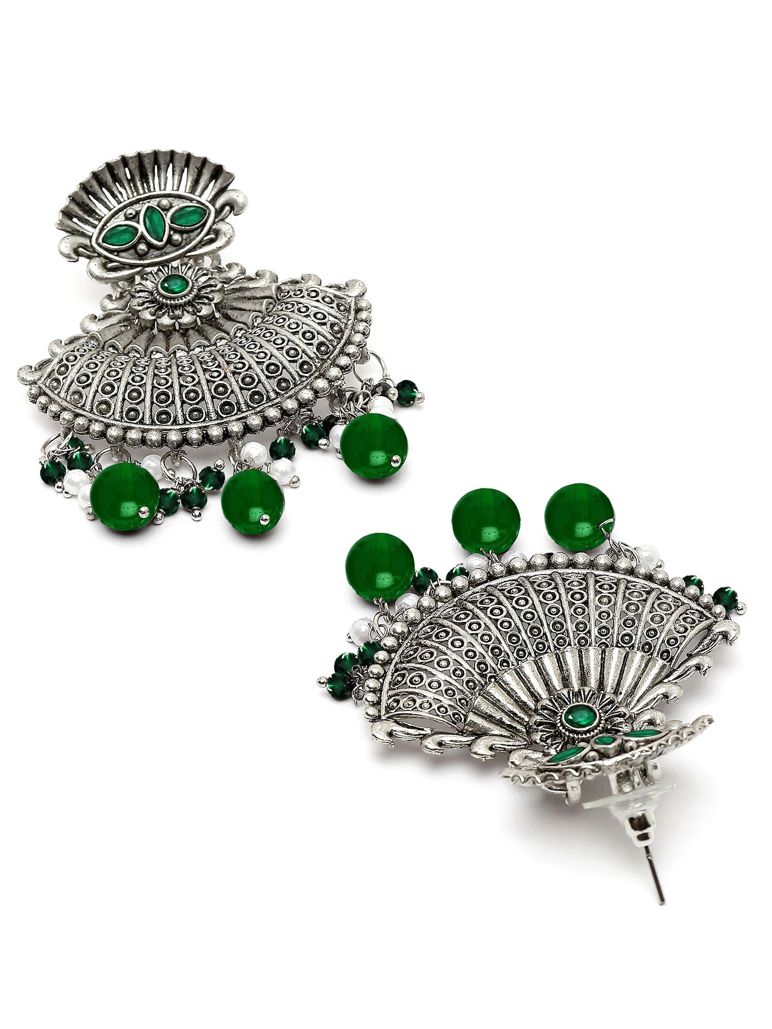 Karatcart Oxidised-Silver Green Stone Dangler Earring for Women