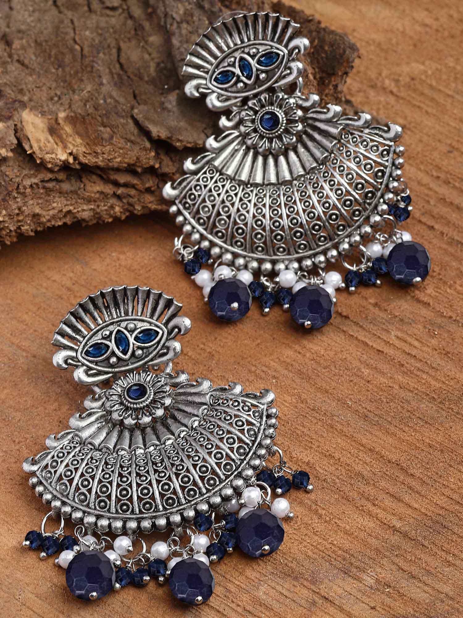 - This is a Blue Earrings by Brand Karatcart which has Kundan stones.This is Oxidised Silver. We at KARATCART understand your desire to look the best on any day & we thrive in making any day an occasion. Every individual at Karatcart carries a passion for jewellery and it reflects in our beautiful designs as well as in our breathtaking craftsmanship. We create unique jewellery so you can make heads turn..