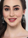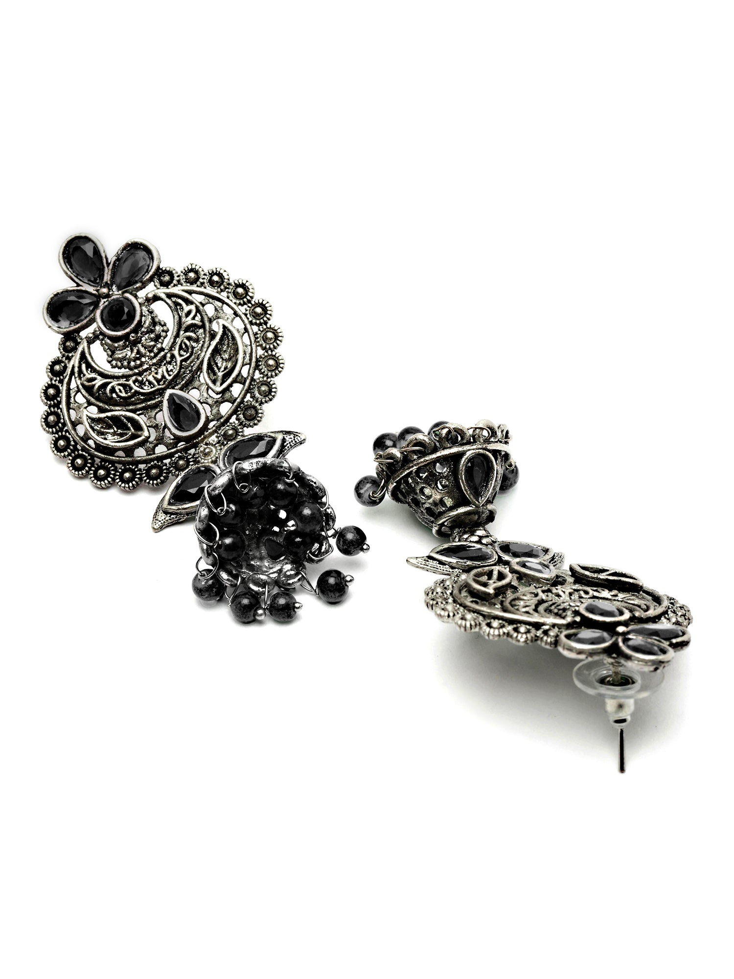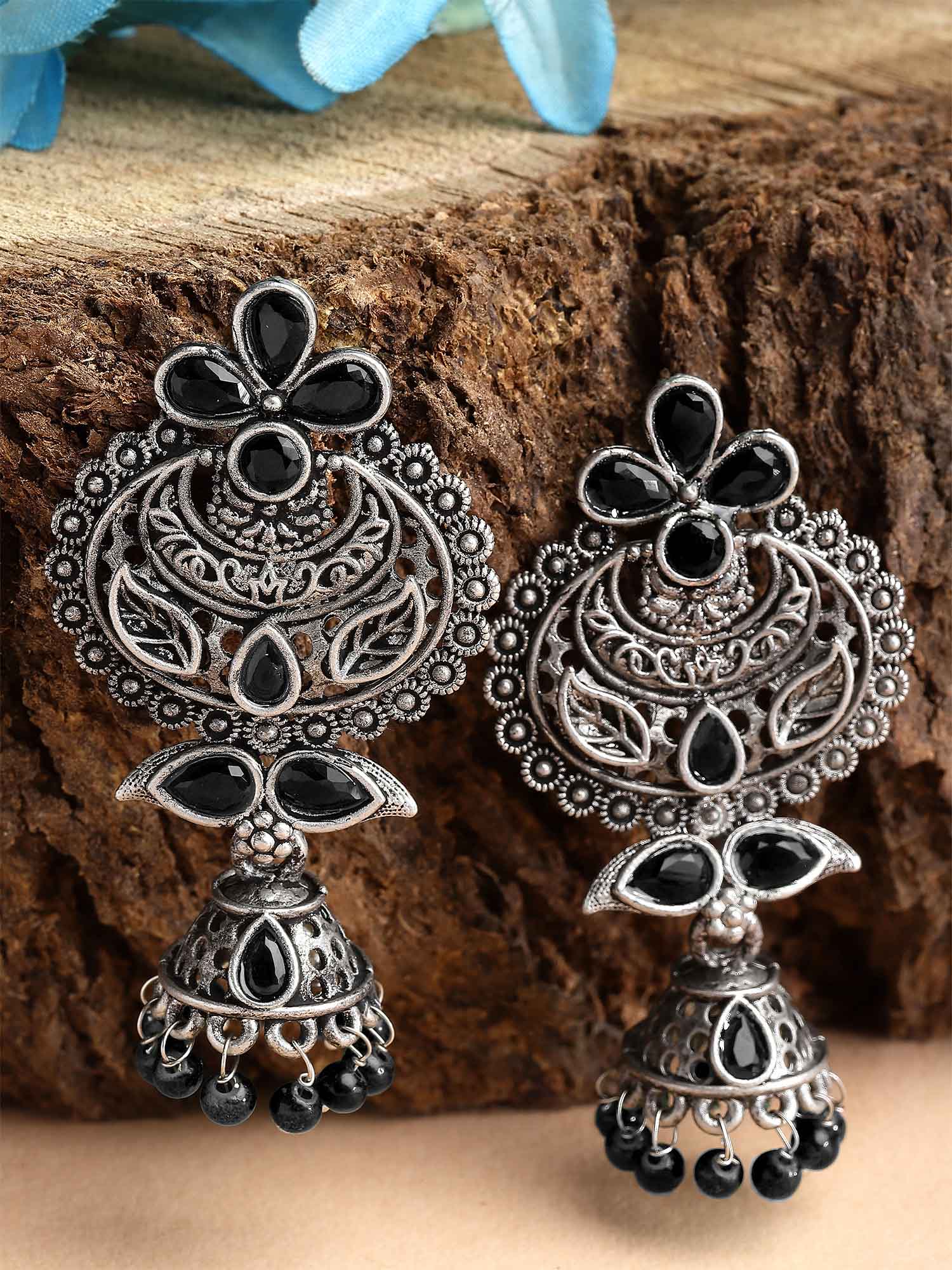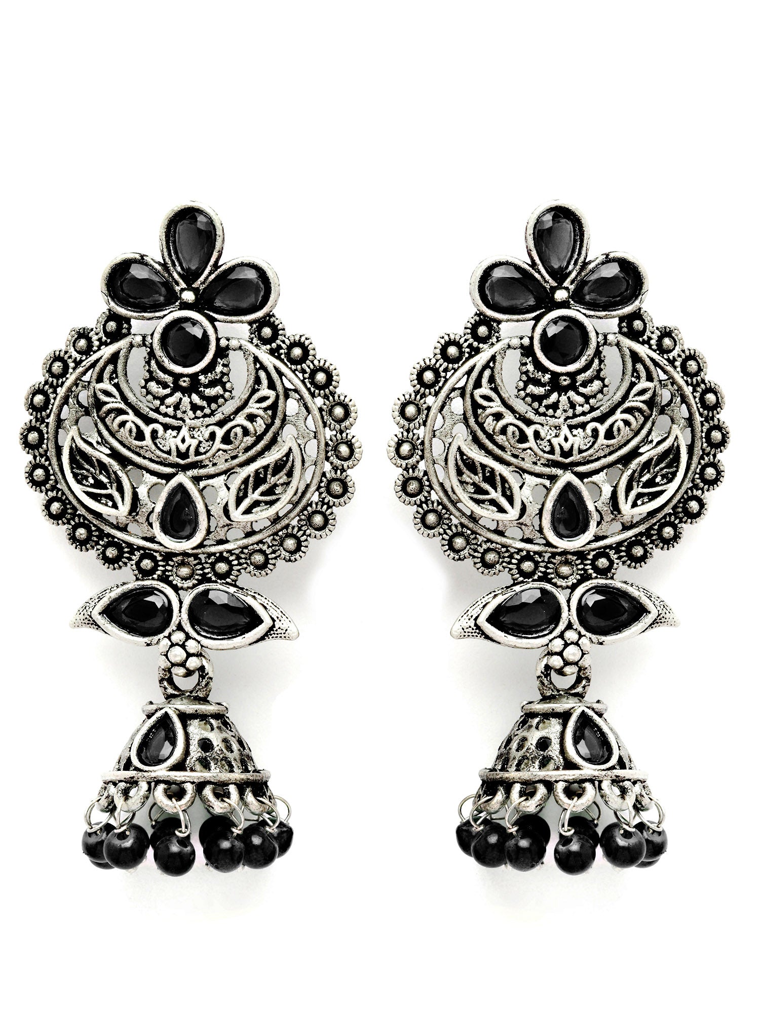 Karatcart Oxidised Silver Black Beads and Stone Studded Drop Earring for Women