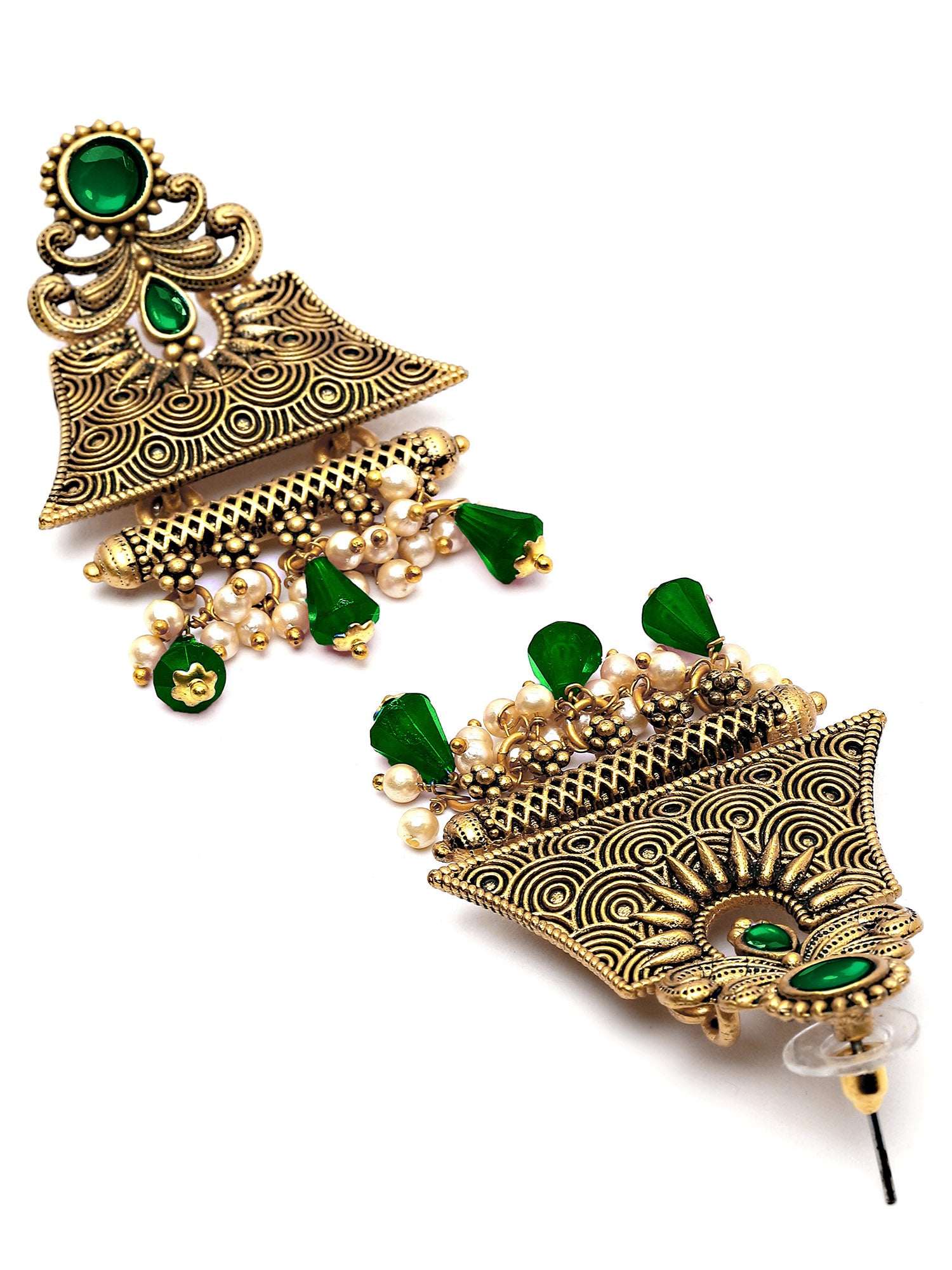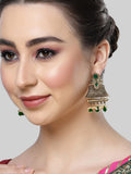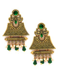 Karatcart Gold Plated Green Crystal Studded Engraved Dangler Earrings for Women
