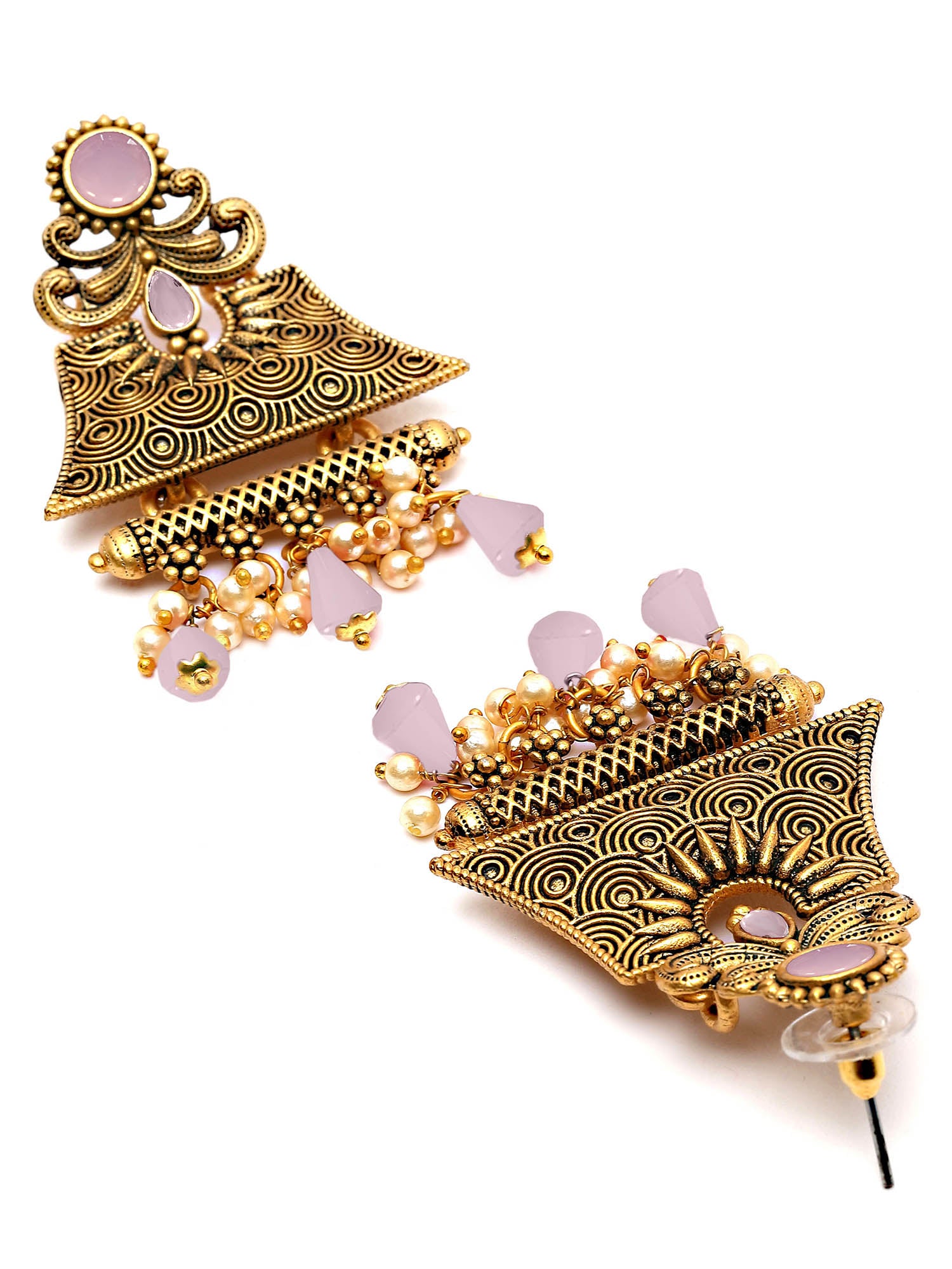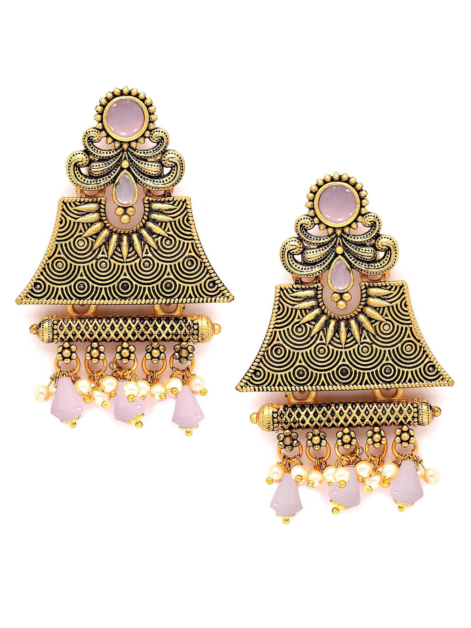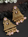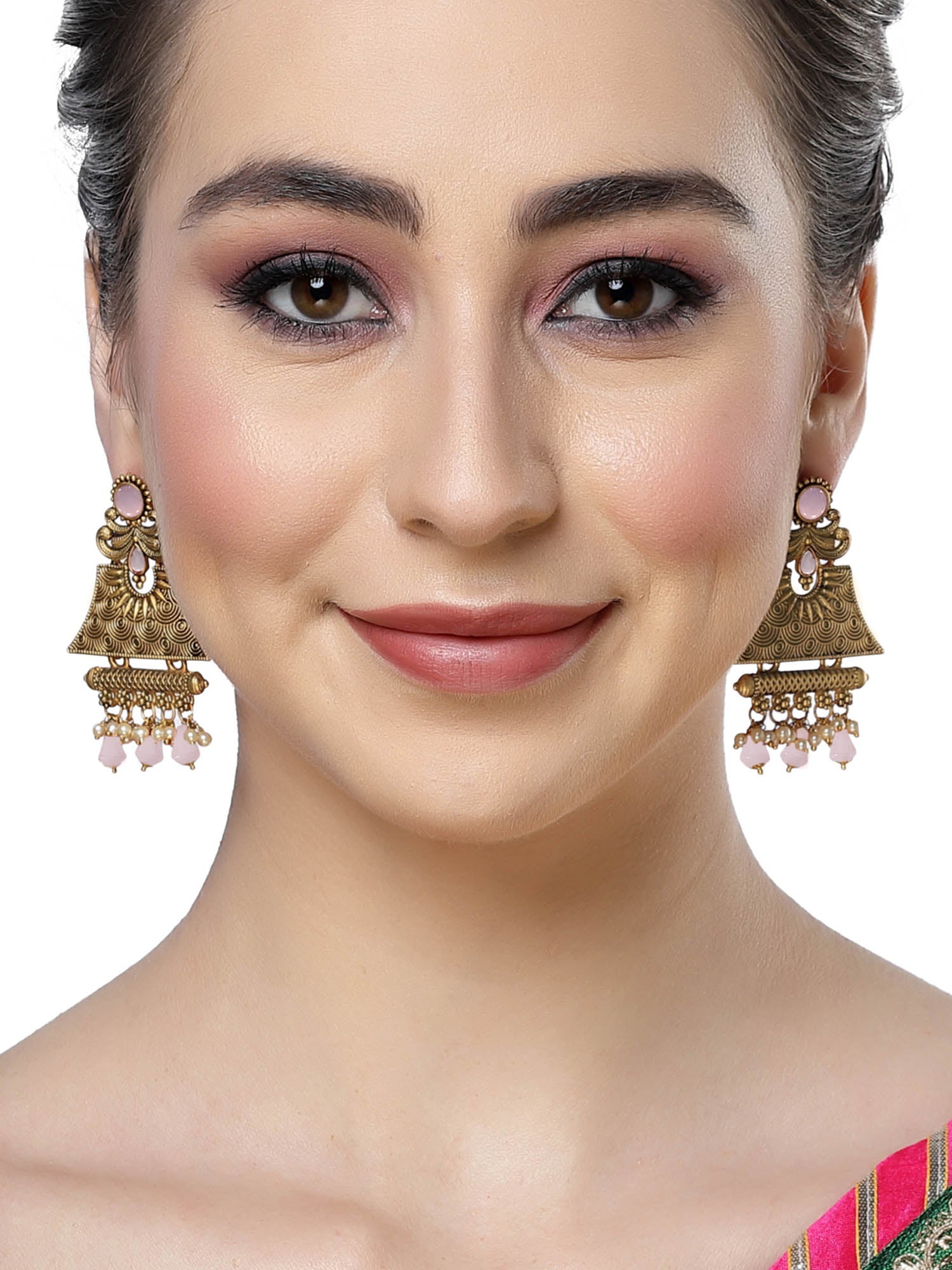 Karatcart Gold Plated Pink Crystal Studded Engraved Dangler Earrings for Women