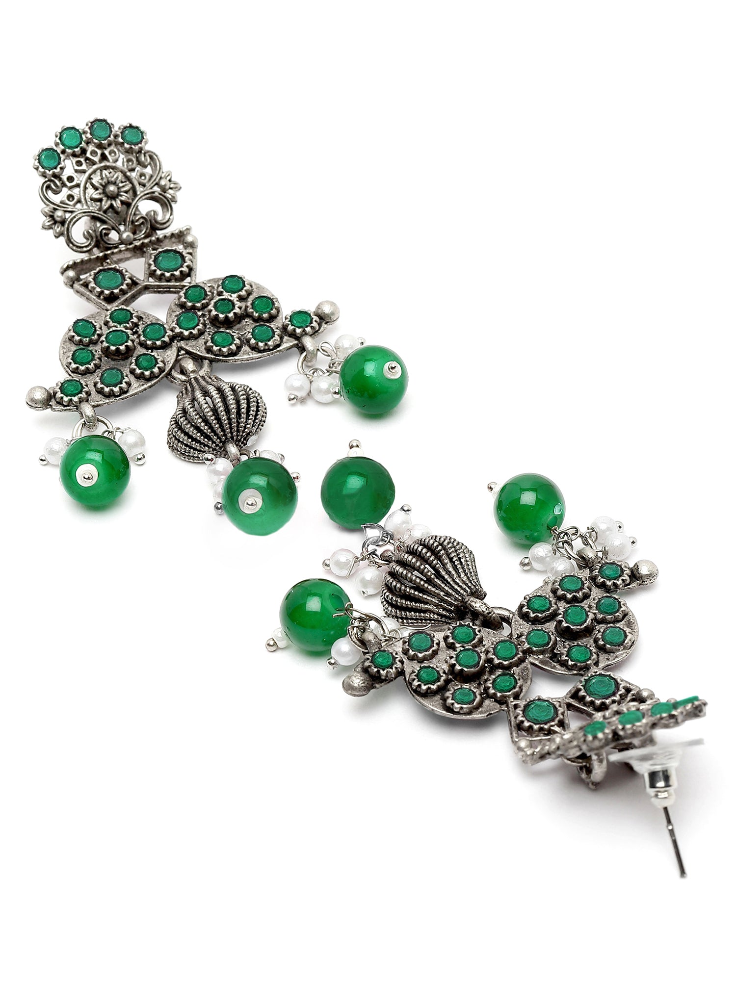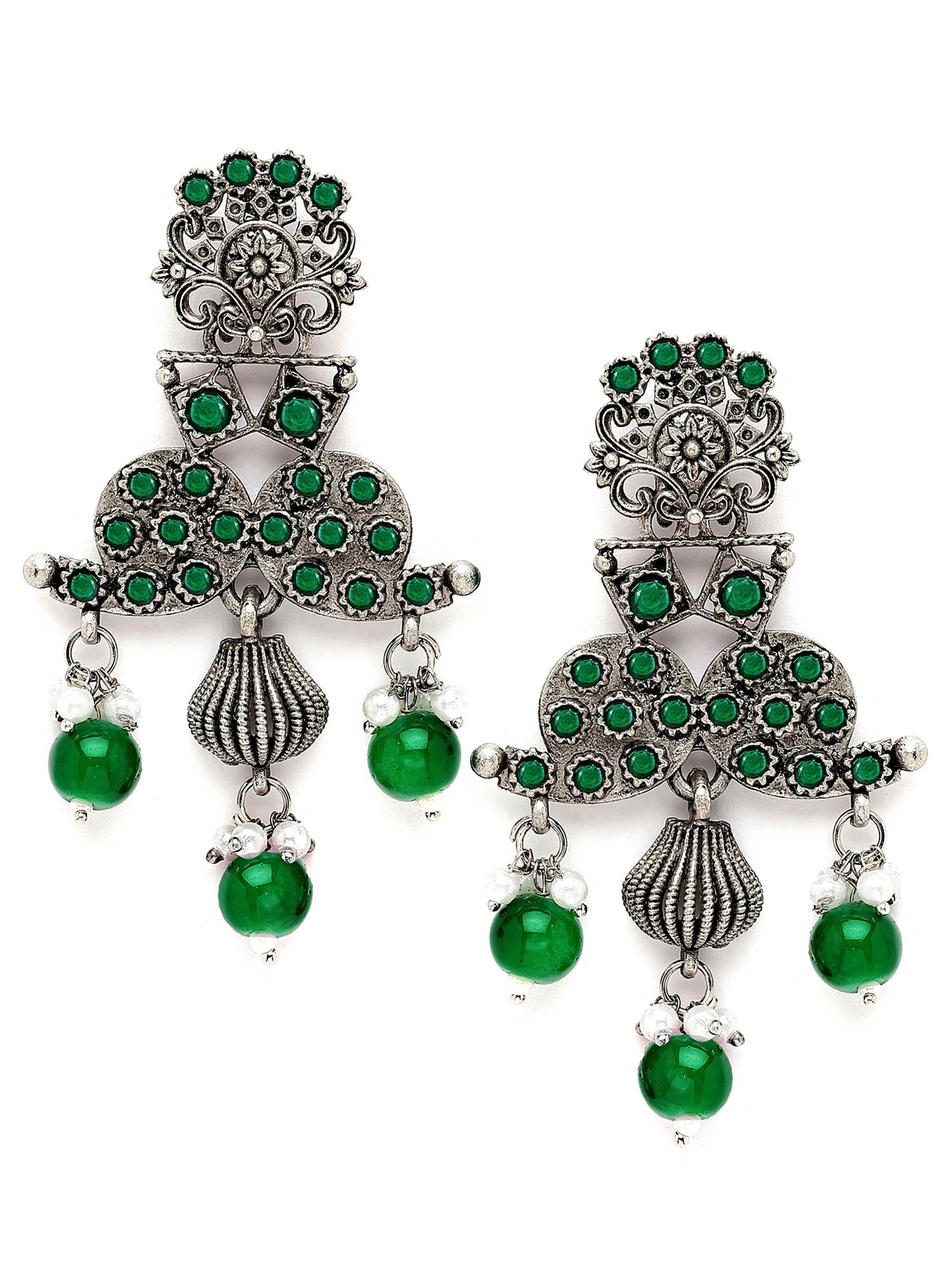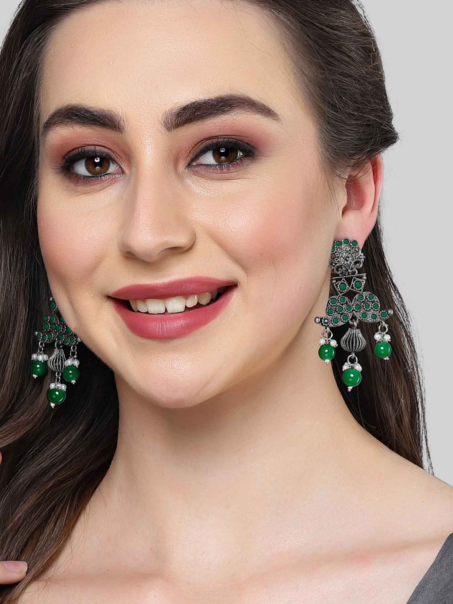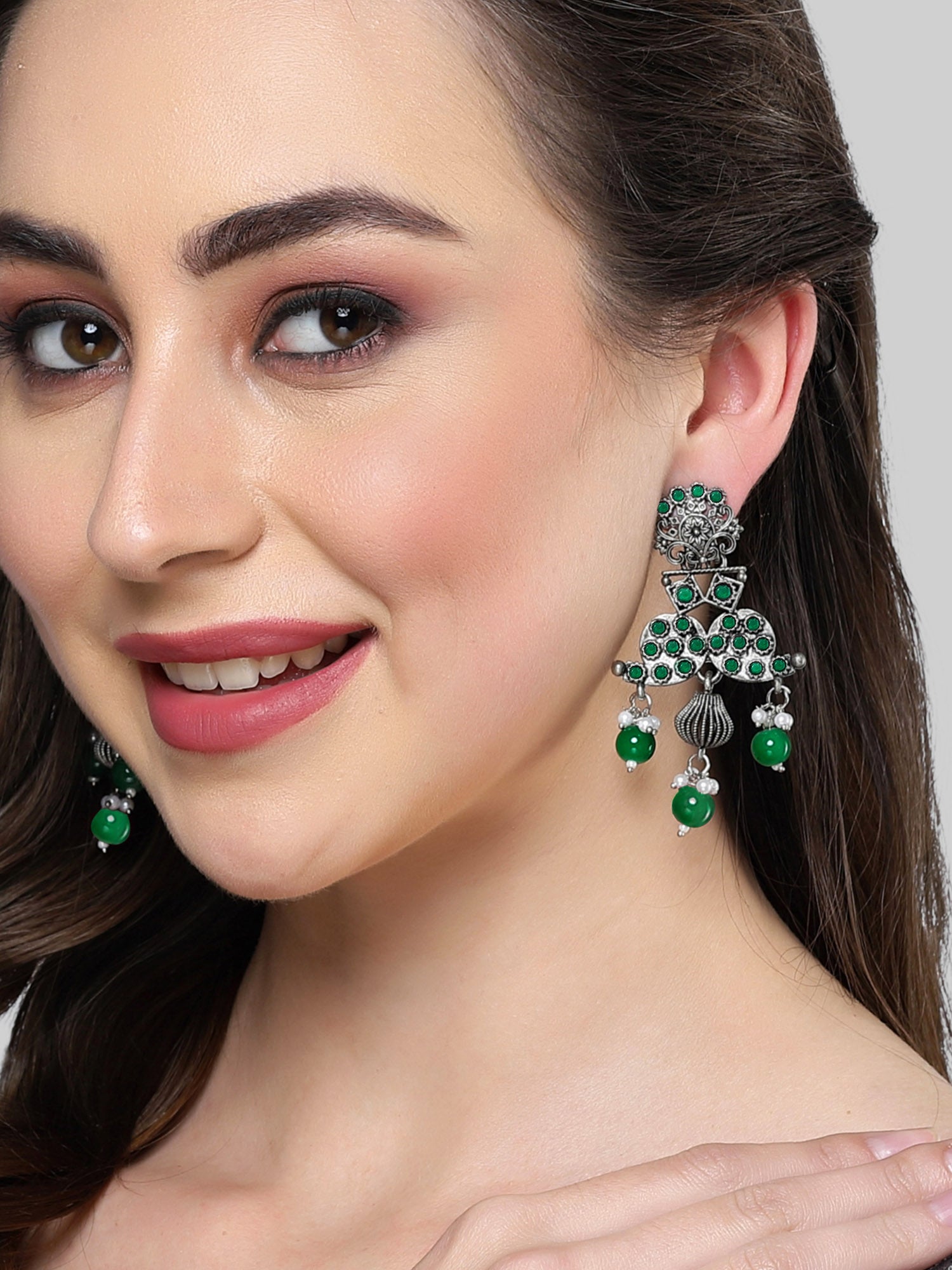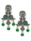 Karatcart Oxidised Silver Green Dangler Earring for Women