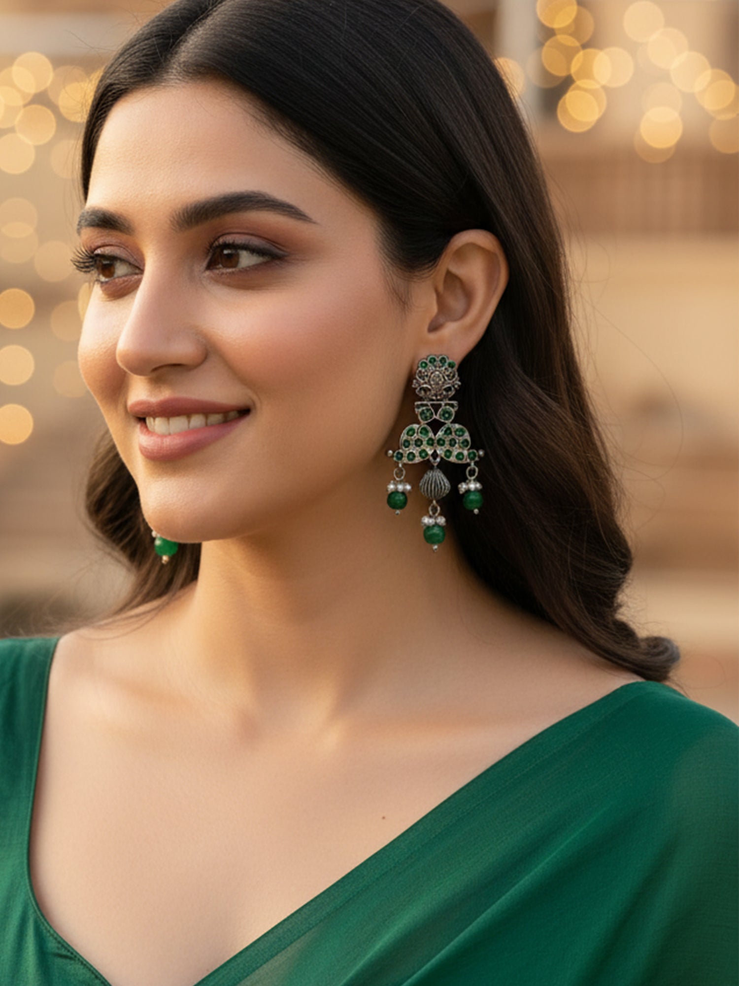 - This is a Green Earrings by Brand Karatcart which has Kundan stones.This is Oxidised Silver. We at KARATCART understand your desire to look the best on any day & we thrive in making any day an occasion. Every individual at Karatcart carries a passion for jewellery and it reflects in our beautiful designs as well as in our breathtaking craftsmanship. We create unique jewellery so you can make heads turn..