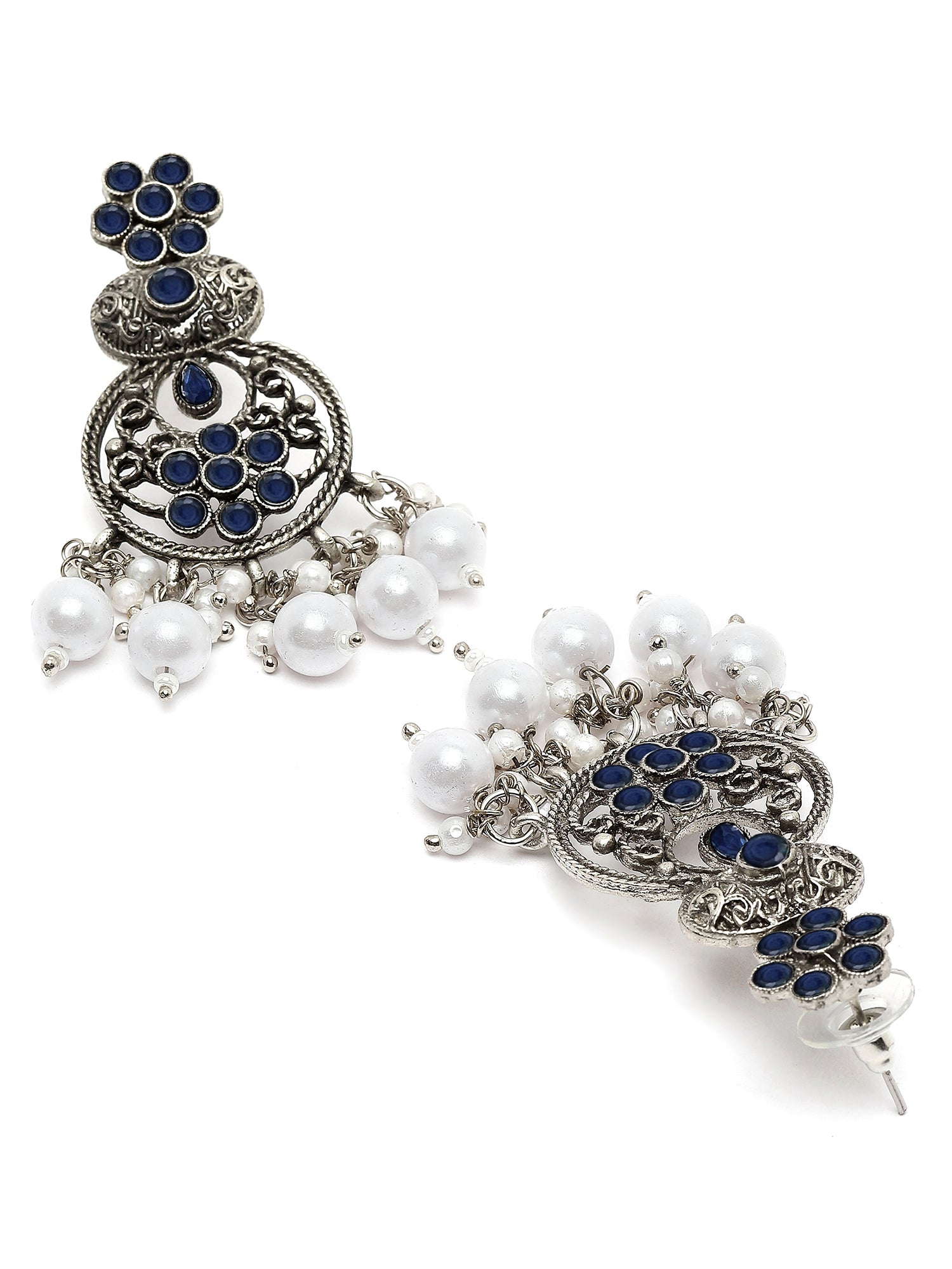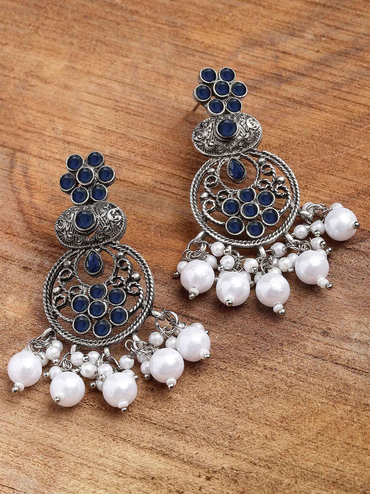 Karatcart Oxidised Silver Blue Stone and Pearl Dangler Earring for Women