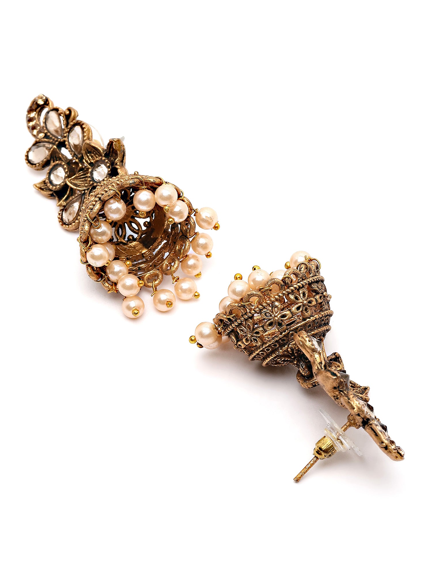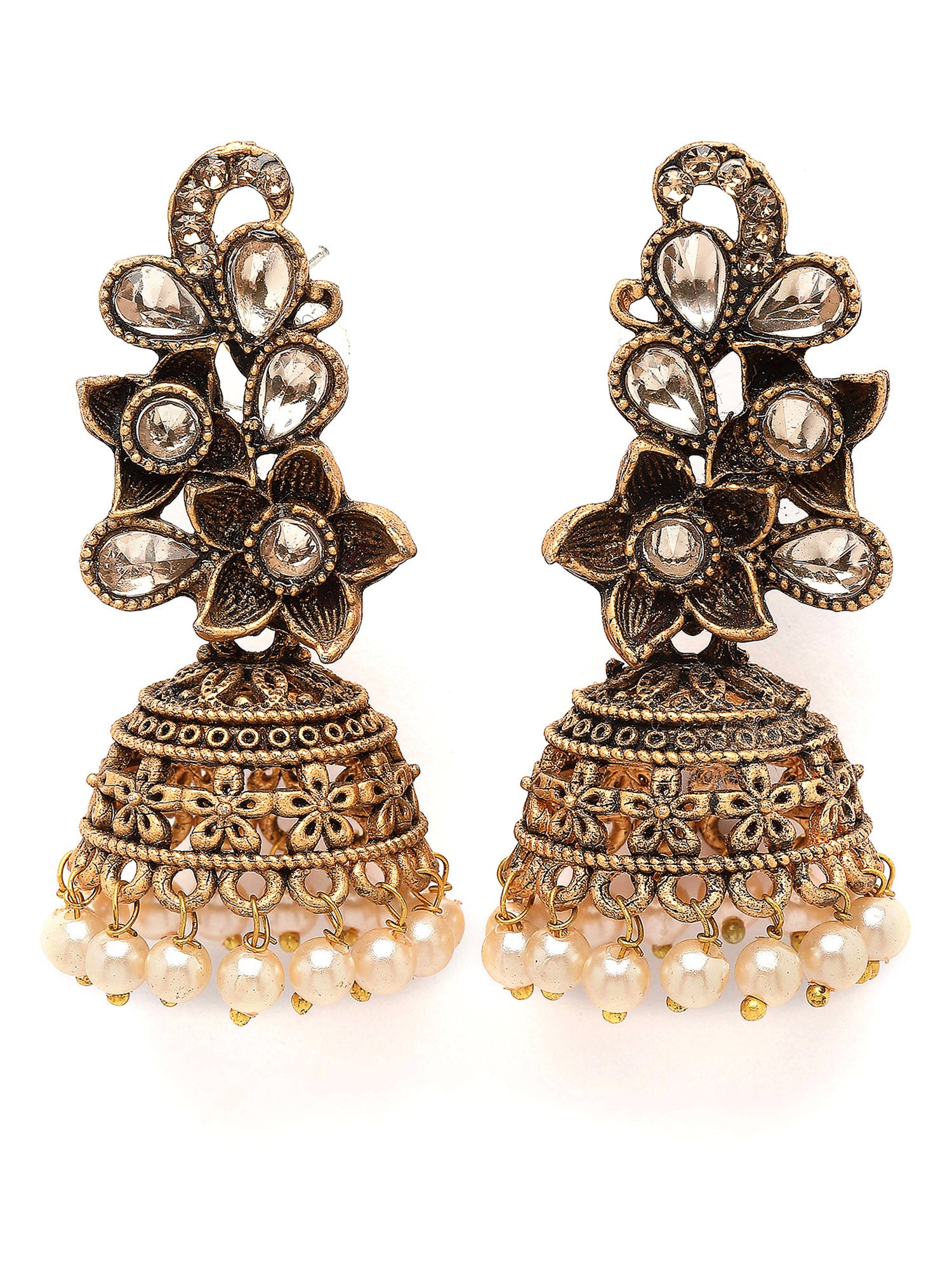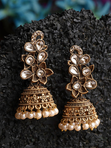 Karatcart Antique Gold Plated Floral Dangler Earrings for Women
