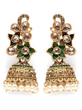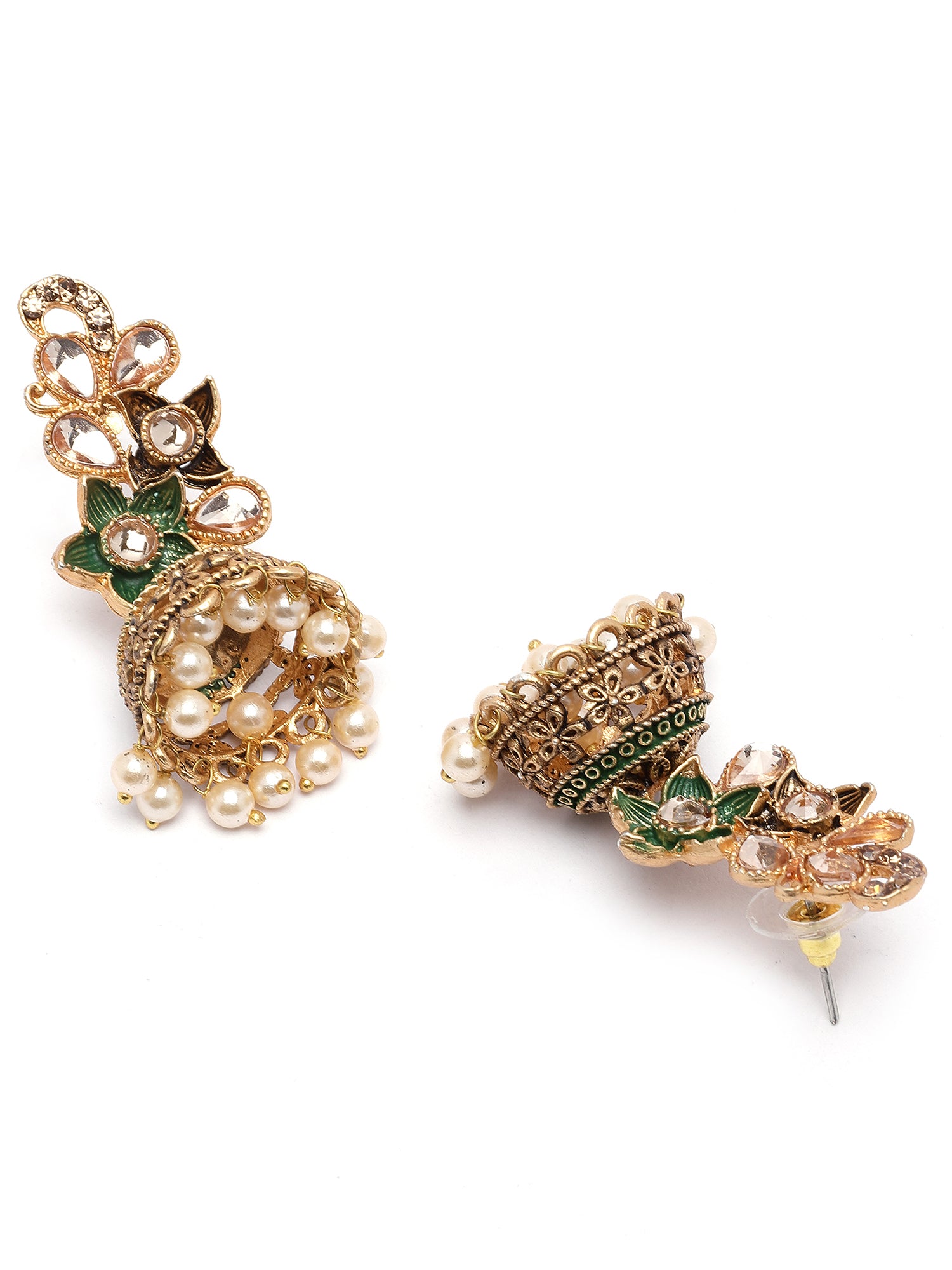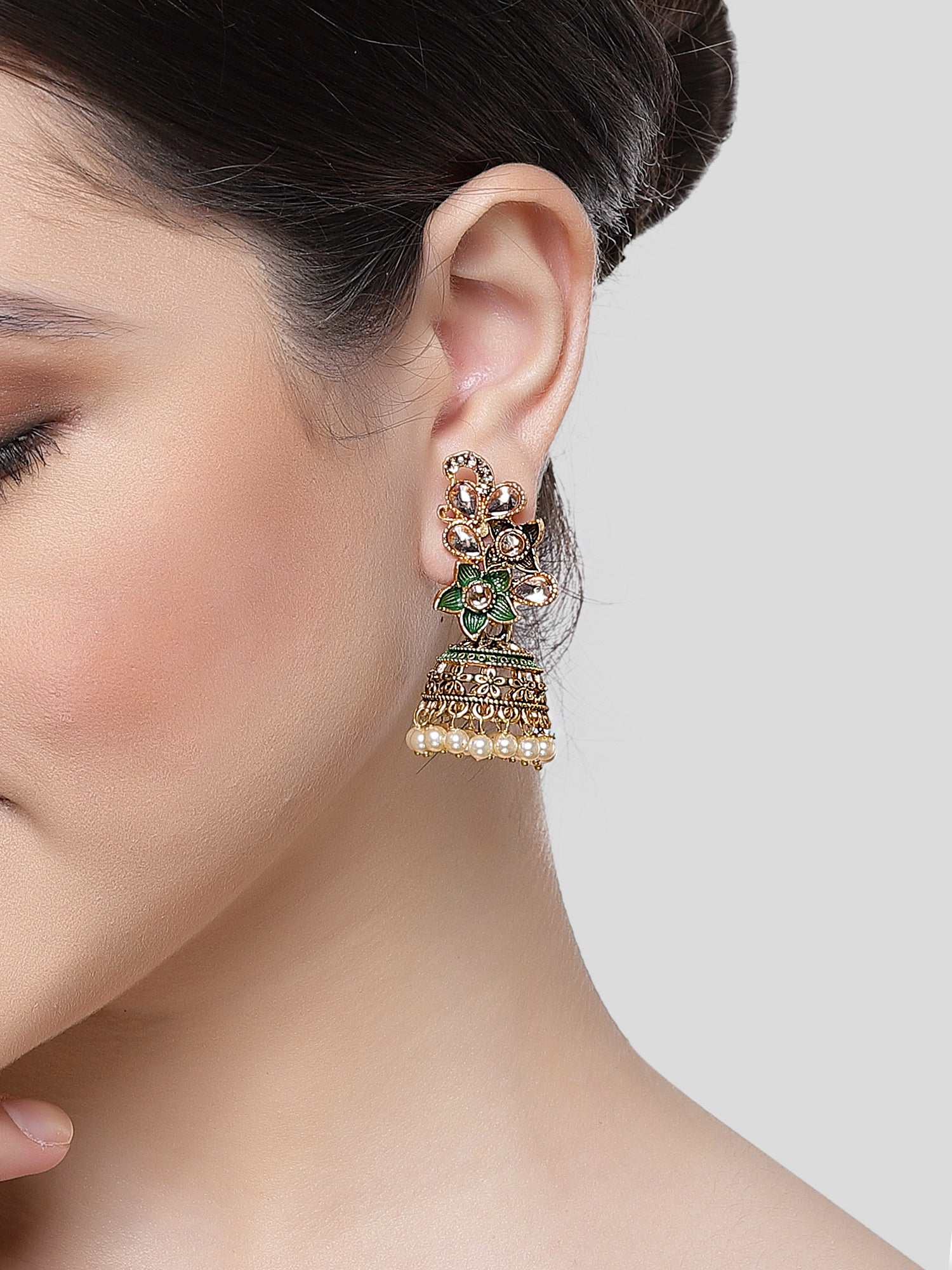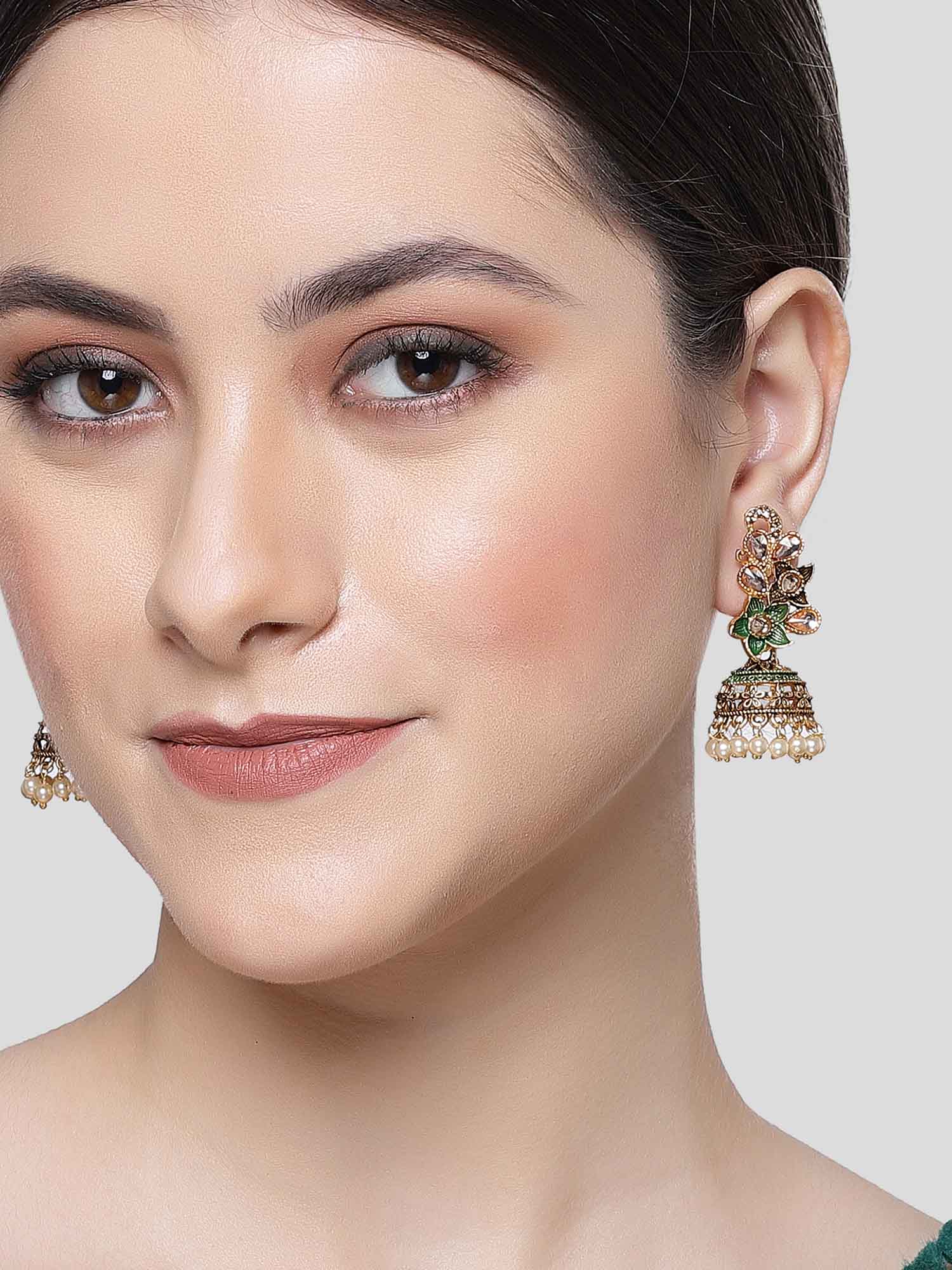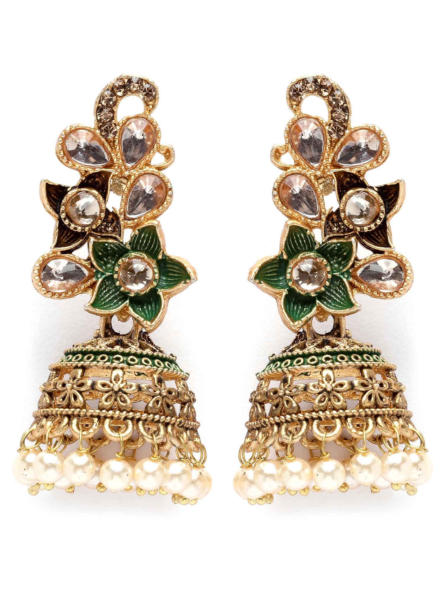 Karatcart Antique Gold Plated Green Meena Floral Dangler Earrings for Women