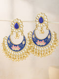 Karatcart Gold Plated Lotus Design Royal Blue Meena Kundan Dangler Earrings for Women