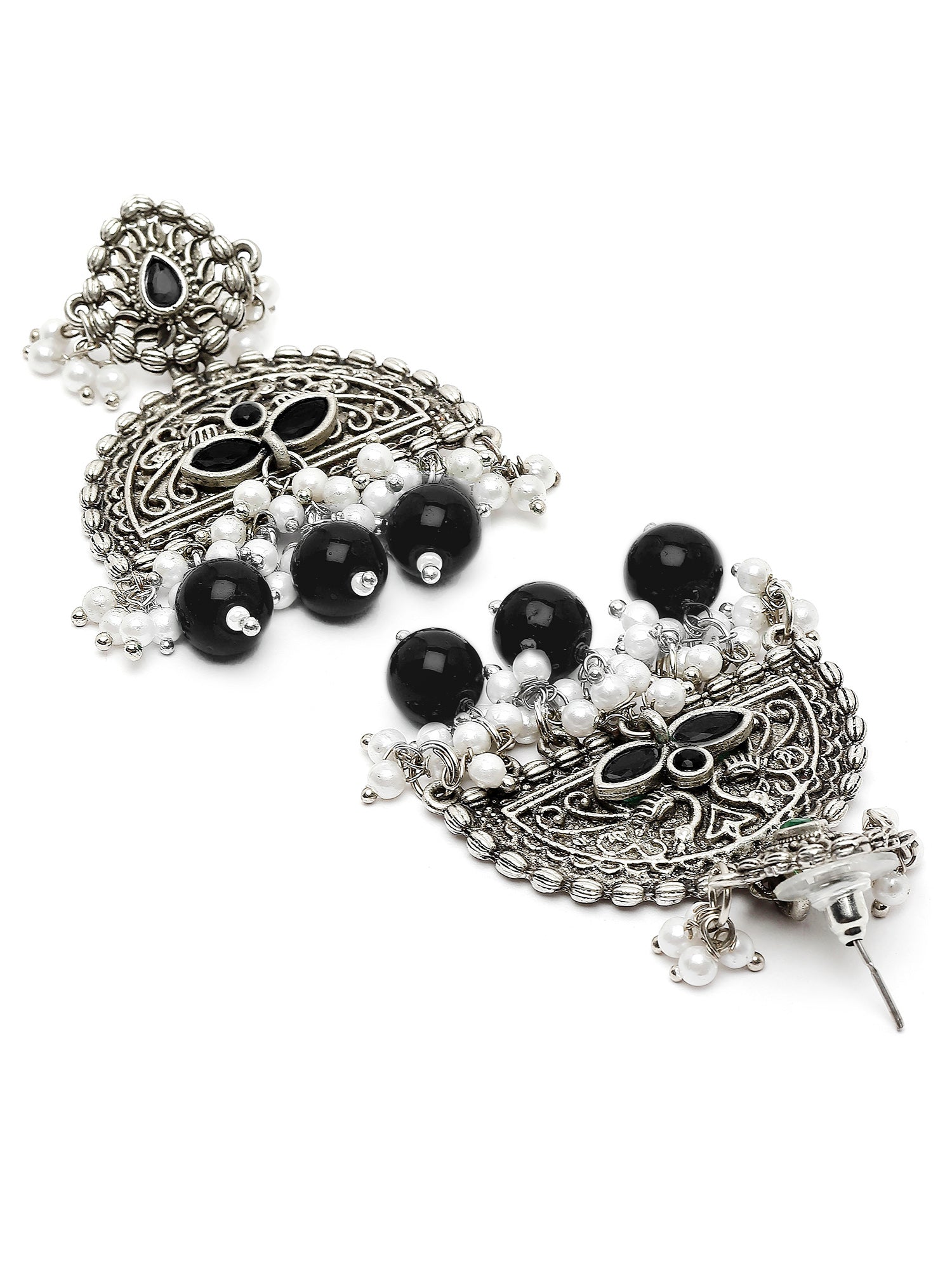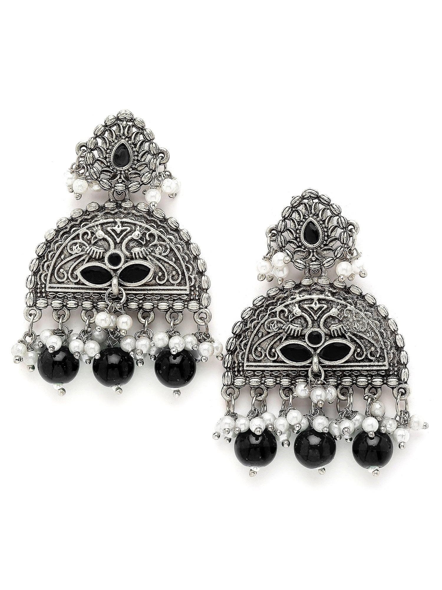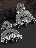 Karatcart Oxidised Silver Black Beads Peacock Design Dangler Earrings for Women
