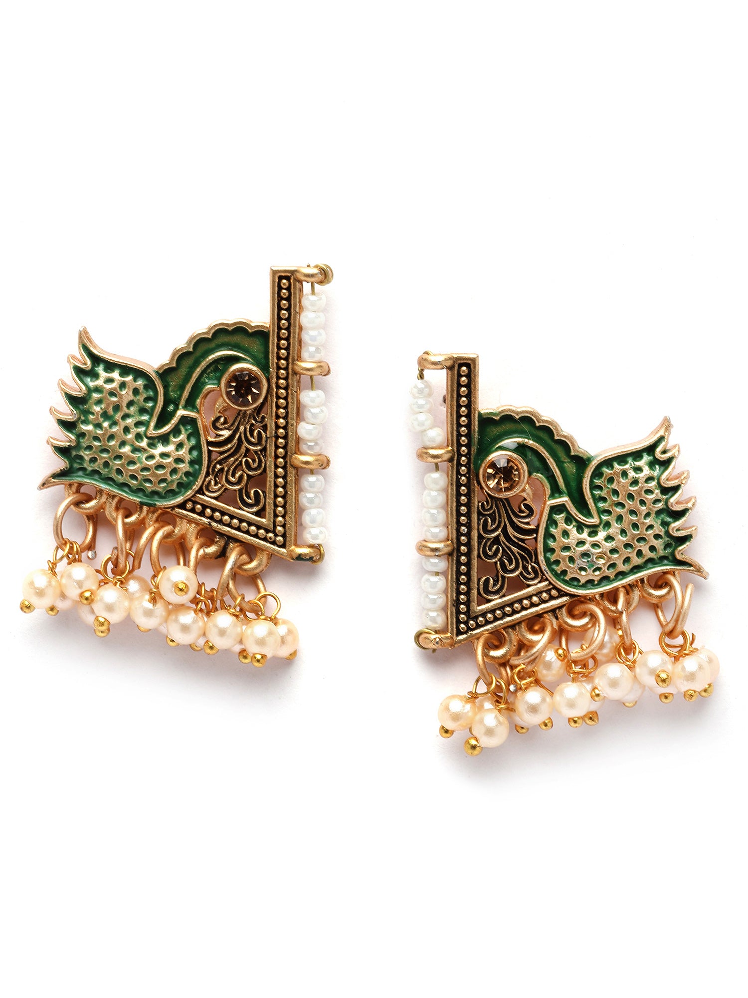 Karatcart Gold Plated Green Meena Peacock Design Stud Earrings for Women