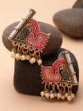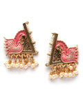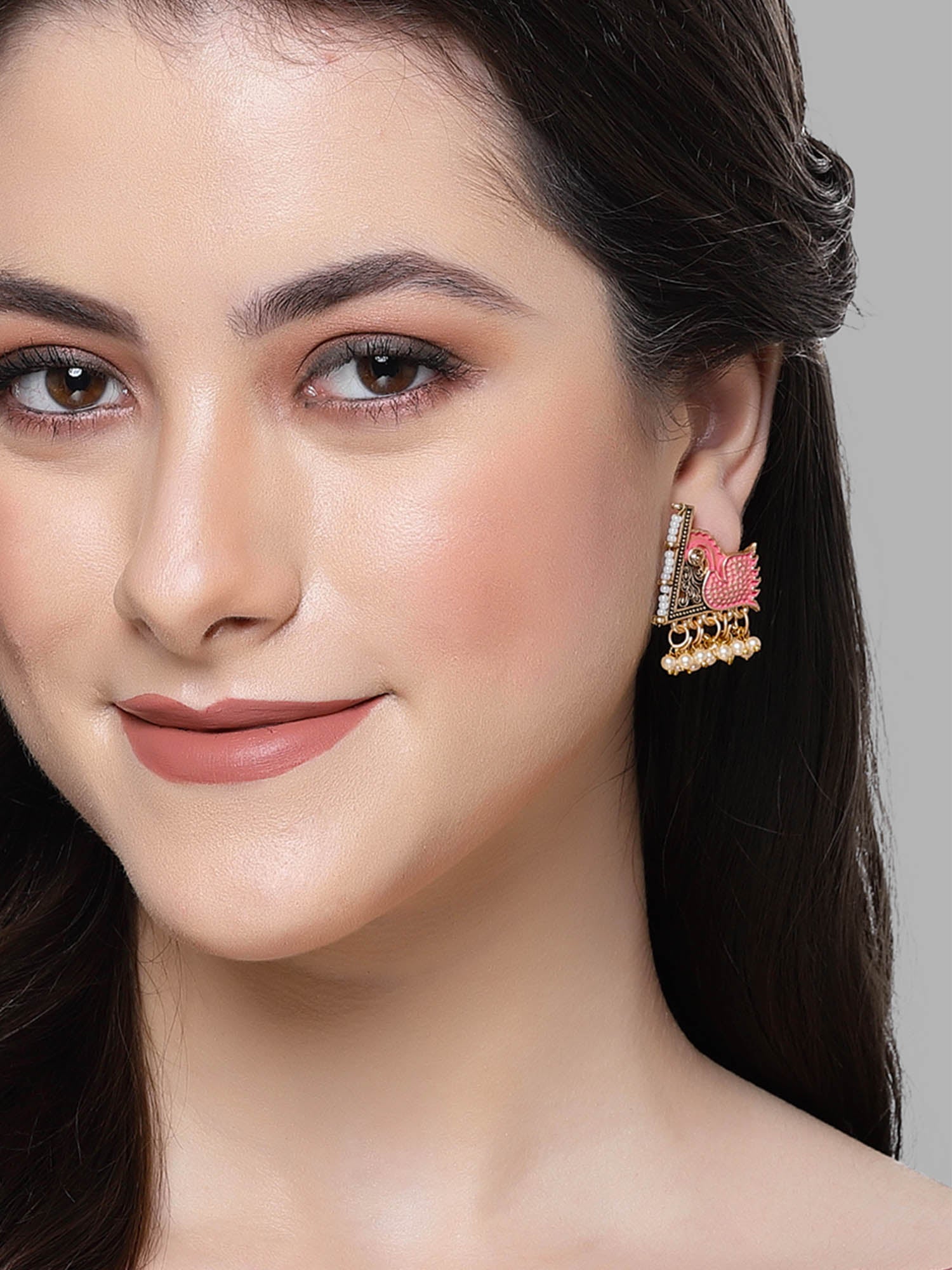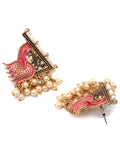 Karatcart Gold Plated Pink Meena Peacock Design Stud Earrings for Women