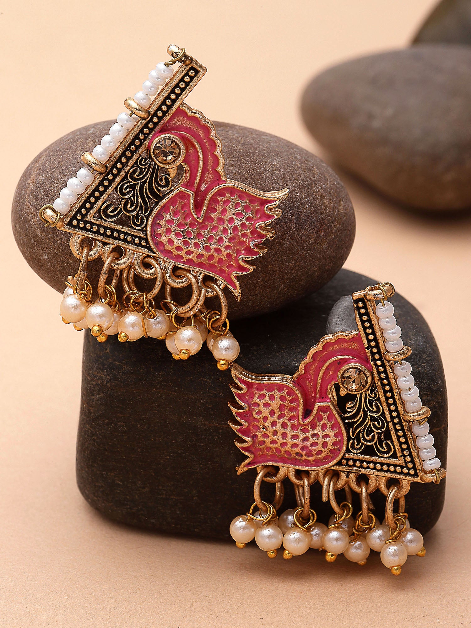 - This is a Pink Earrings by Brand Karatcart which has Enamel stones.This is Gold Plated. We at KARATCART understand your desire to look the best on any day & we thrive in making any day an occasion. Every individual at Karatcart carries a passion for jewellery and it reflects in our beautiful designs as well as in our breathtaking craftsmanship. We create unique jewellery so you can make heads turn..