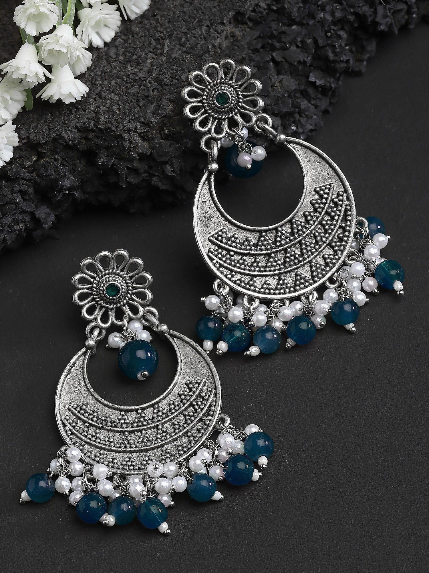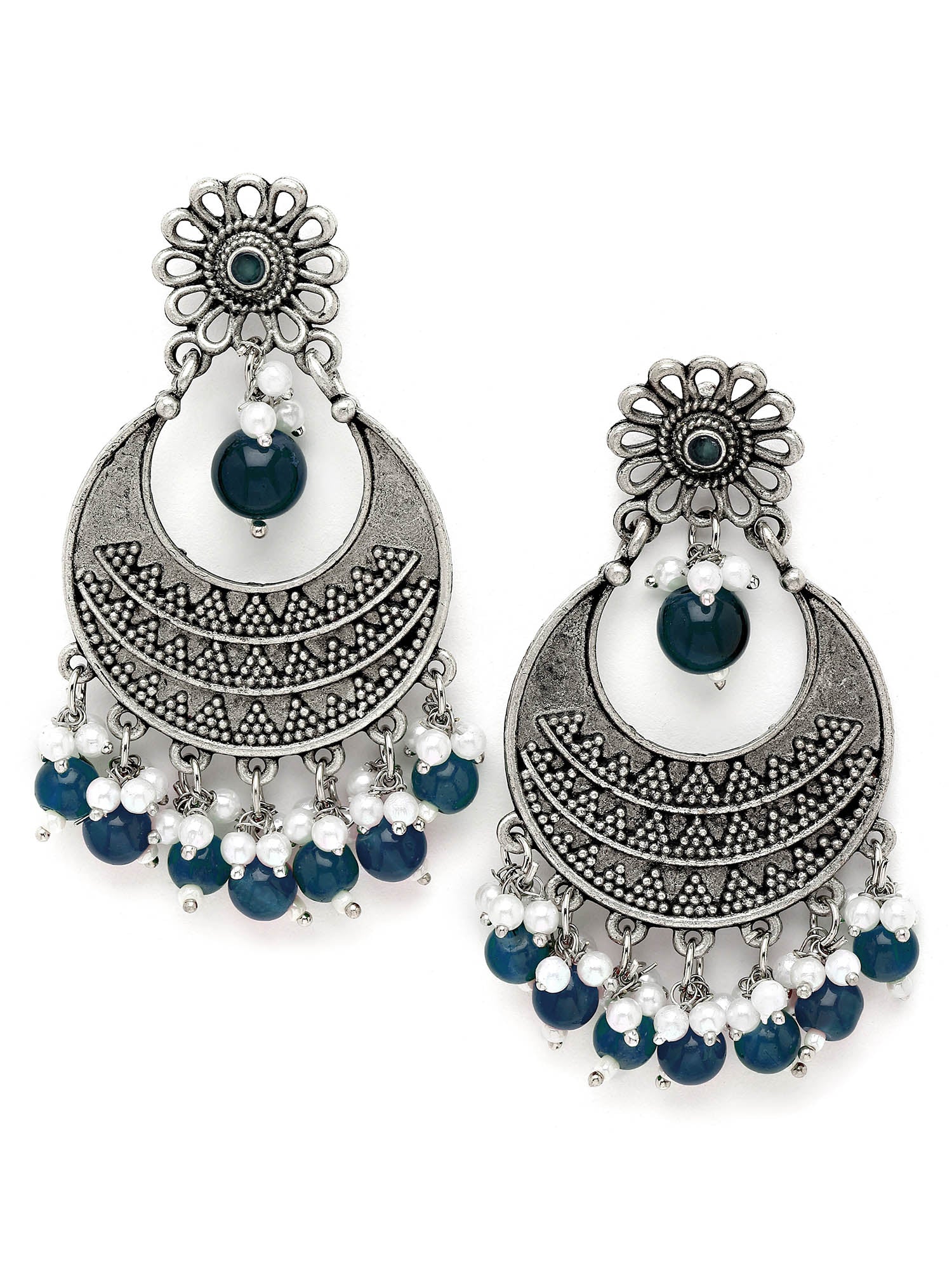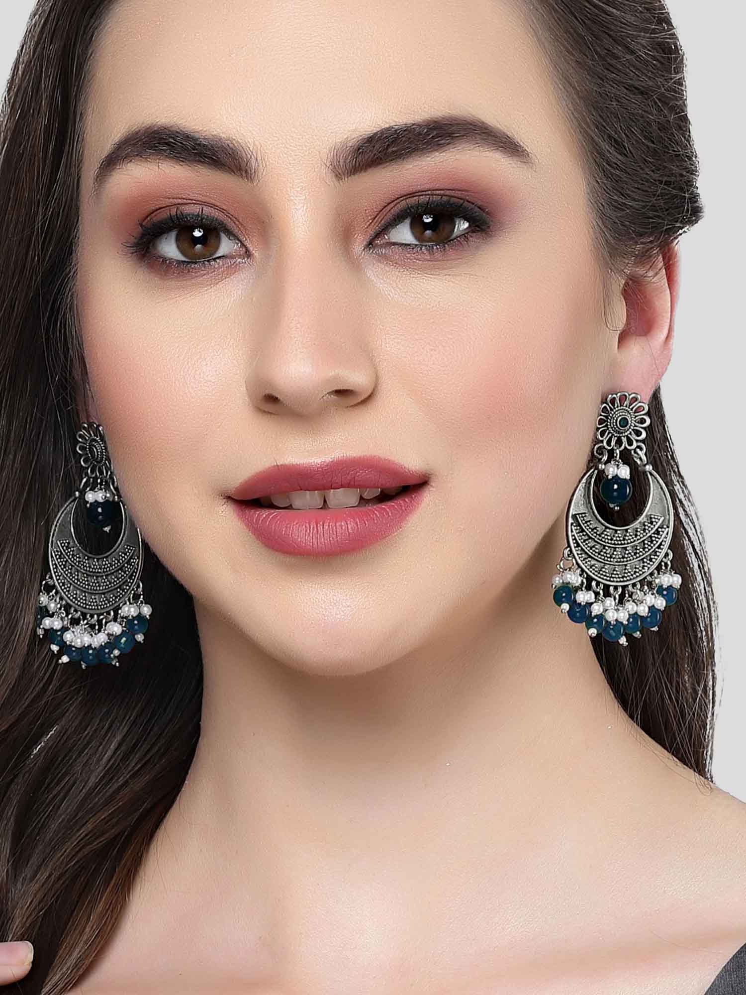 Karatcart Oxidised Silver Blue Beads Dangler Earrings for Women