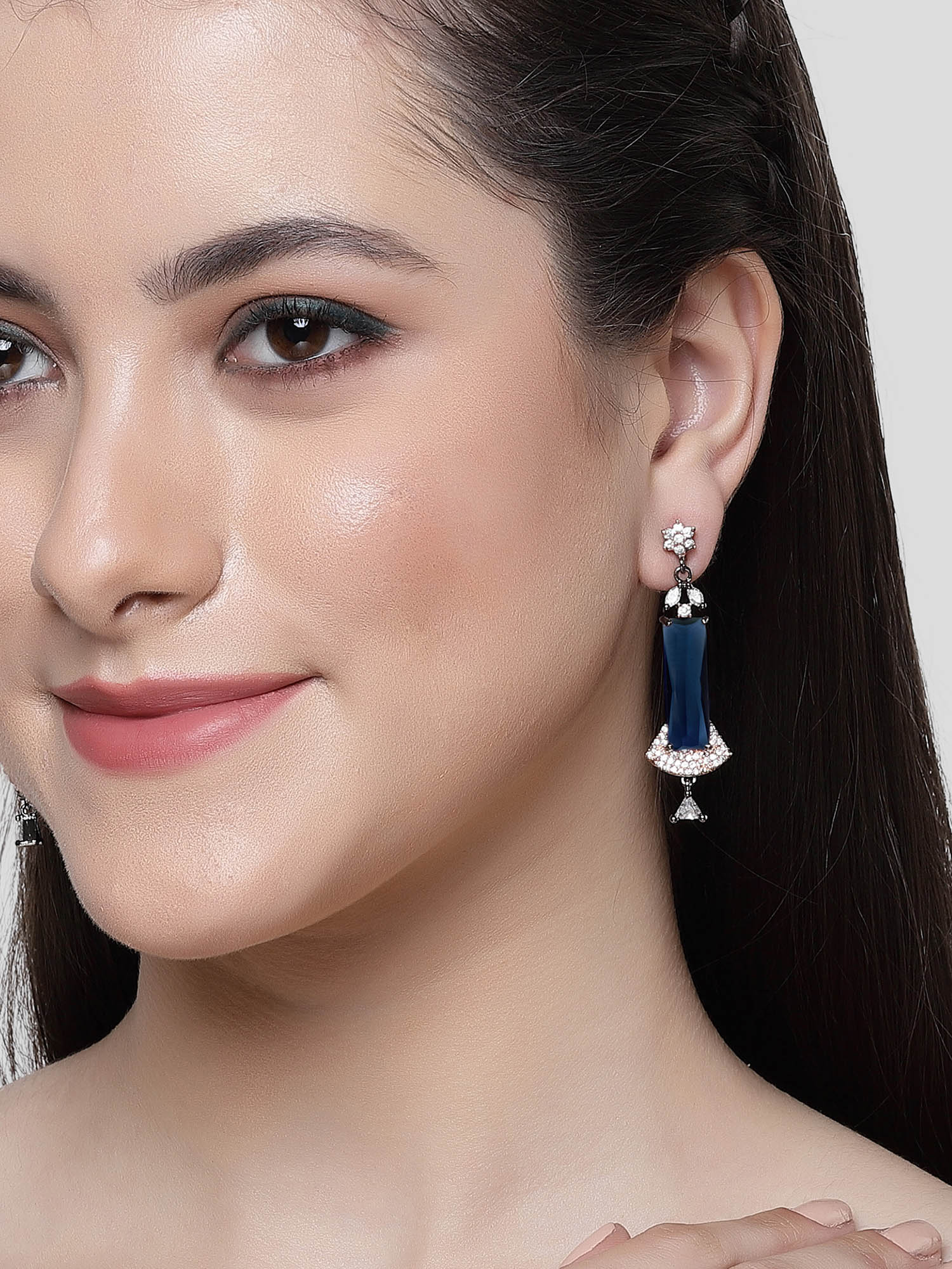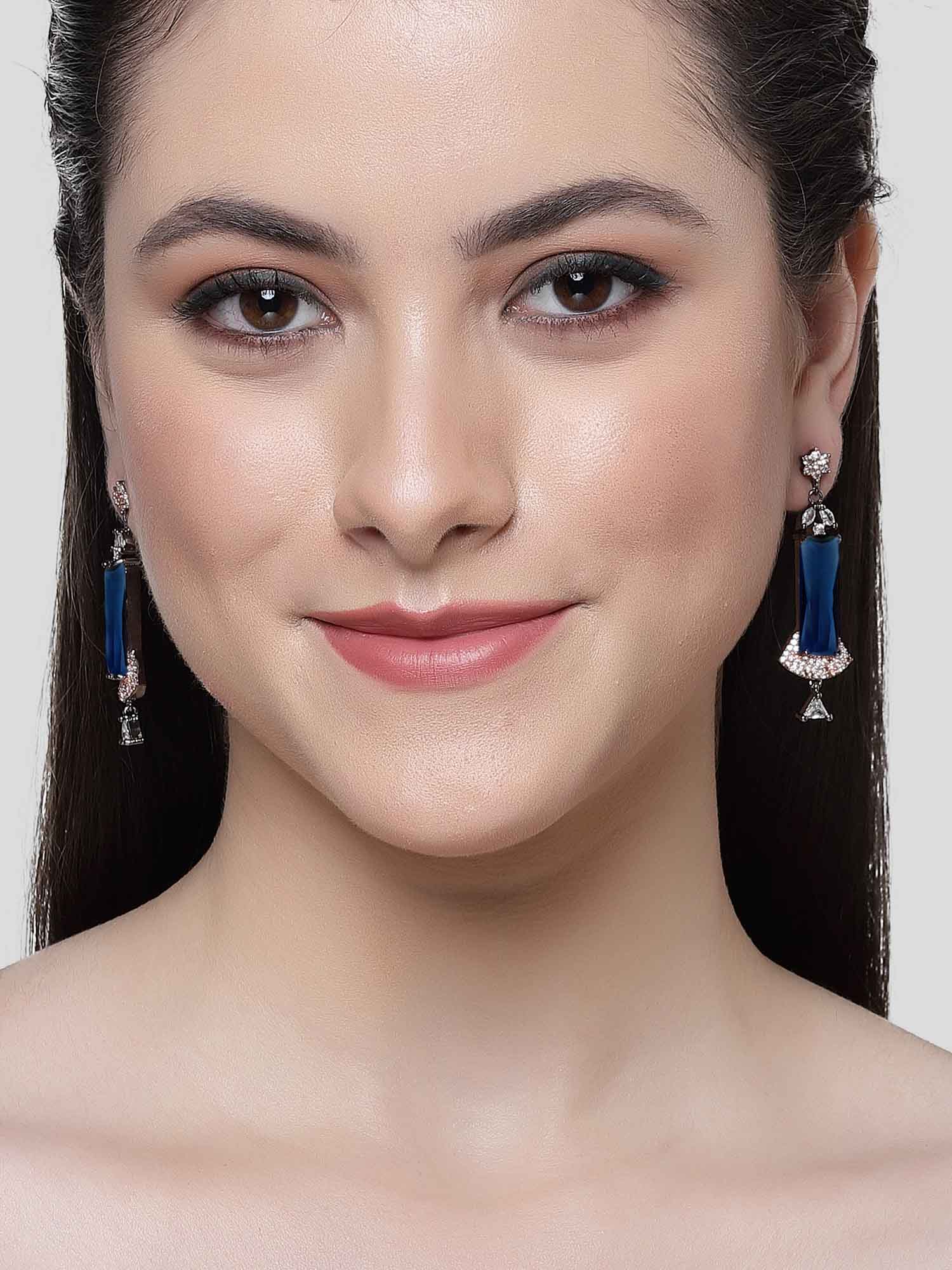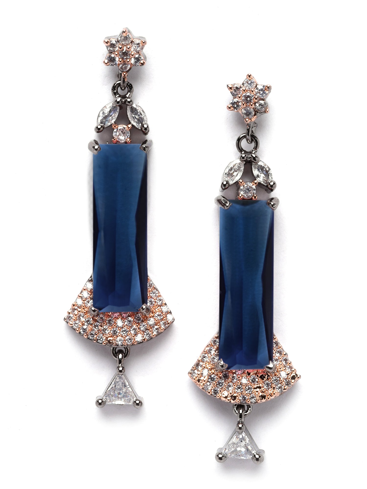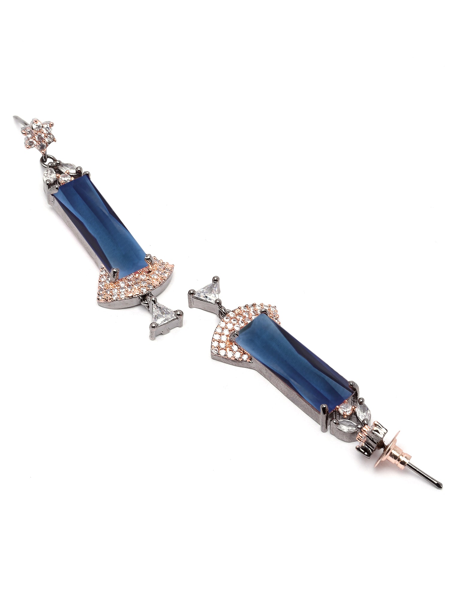 - This is a BLue Earrings by Brand Karatcart which has American Diamond stones.This is Rose Gold Plated. We at KARATCART understand your desire to look the best on any day & we thrive in making any day an occasion. Every individual at Karatcart carries a passion for jewellery and it reflects in our beautiful designs as well as in our breathtaking craftsmanship. We create unique jewellery so you can make heads turn..