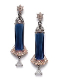 Karatcart Rose Gold Plated Blue Cubic Zirconia Studded Drop Earrings for Women