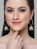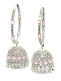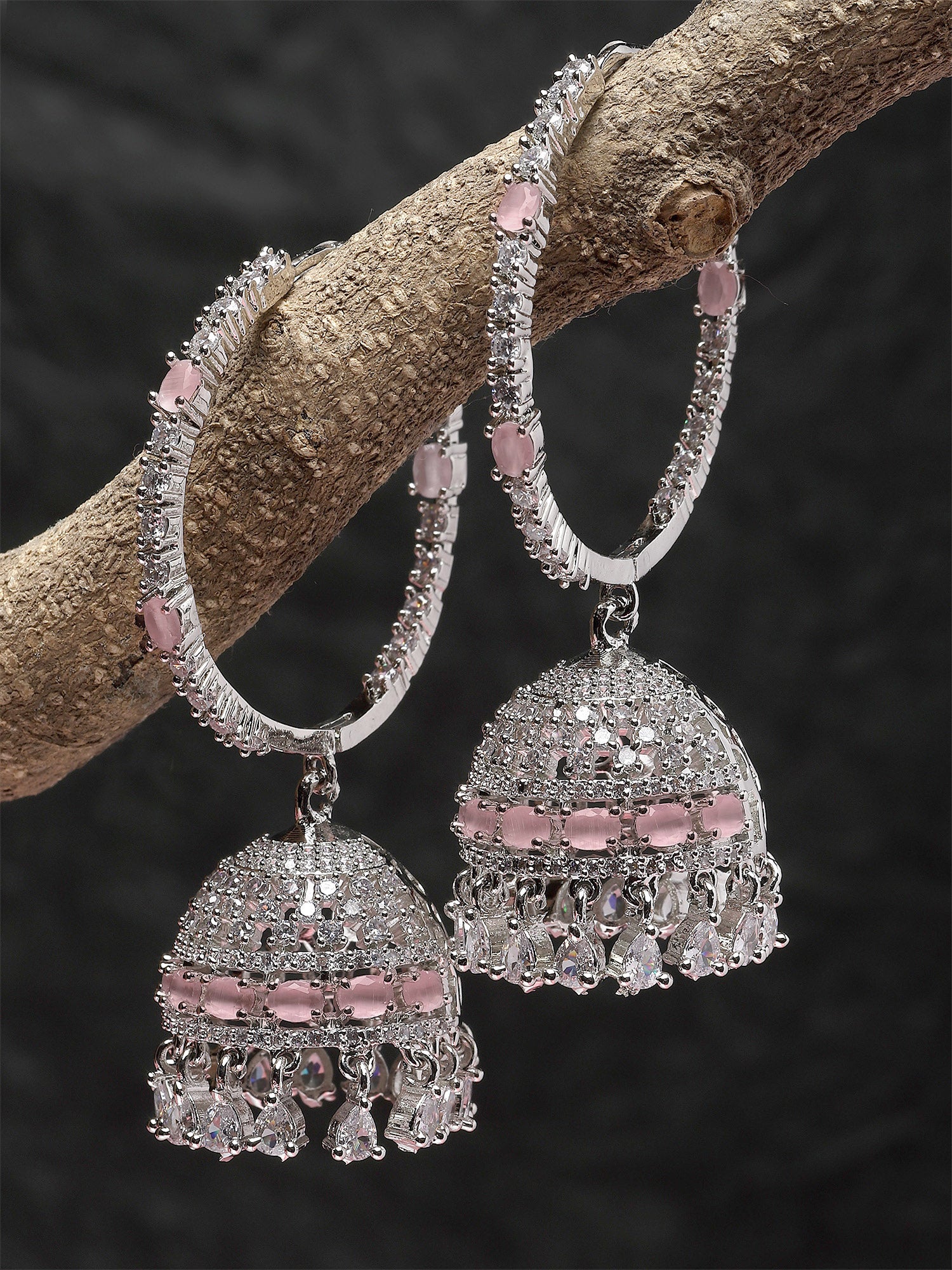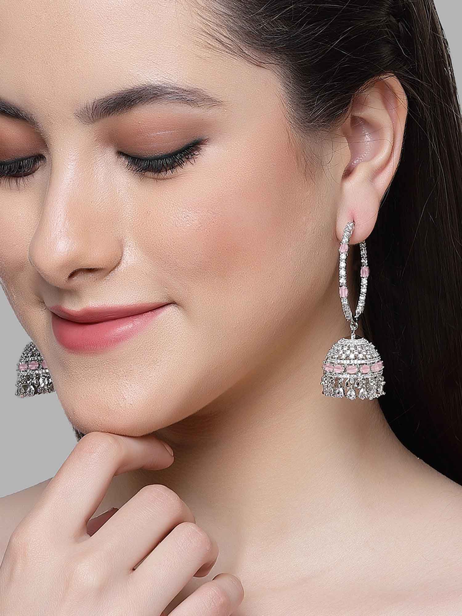 Karatcart Silver Plated Pink Cubic Zirconia Studded Hoop Jhumki Earrings for Women