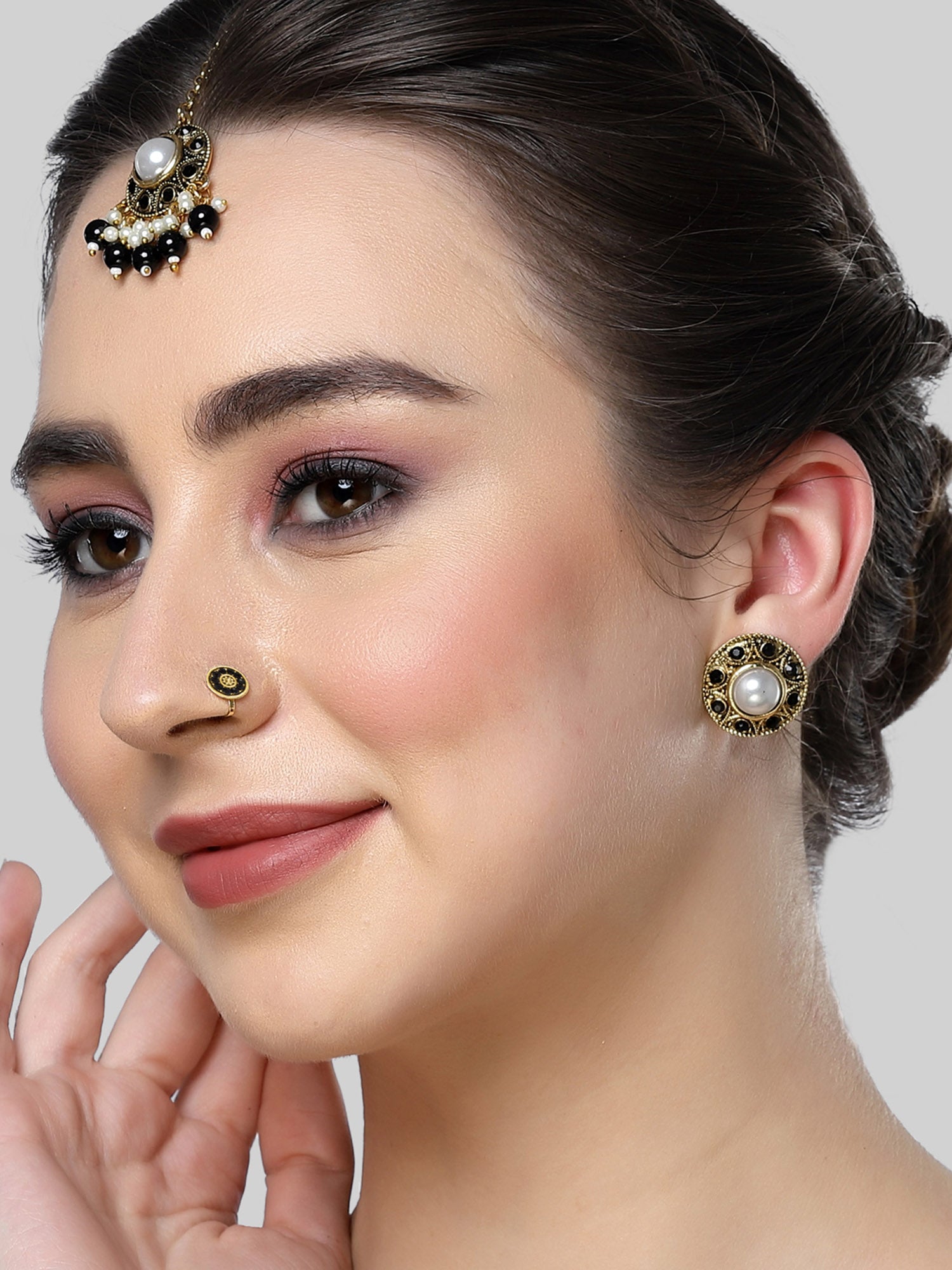 - What’s Included: 1 Pair of Earrings, 1 Maangtikka and 1 Nath