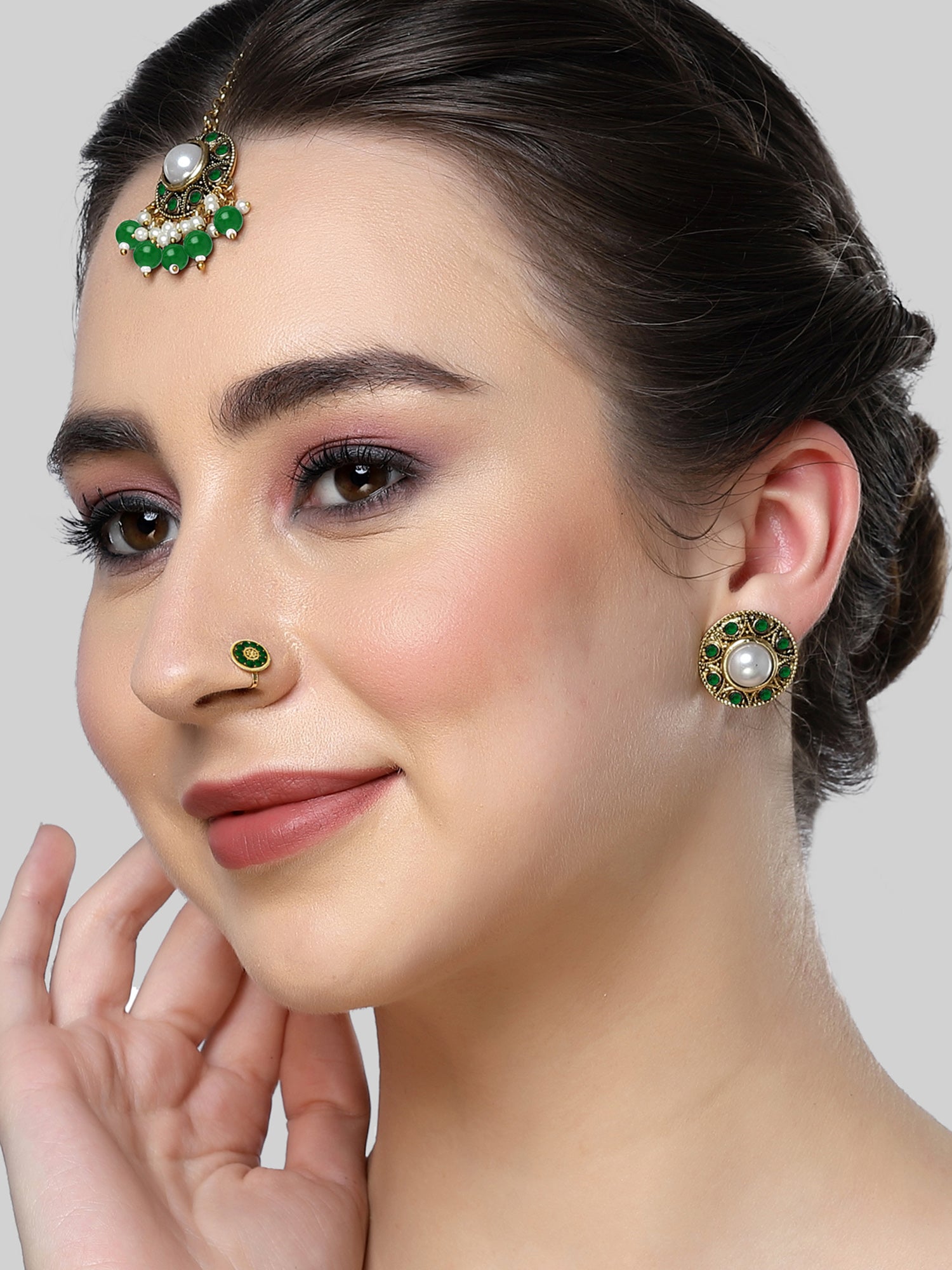 - What’s Included: 1 Pair of Earrings, 1 Maangtikka and 1 Nath
