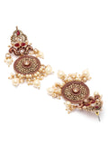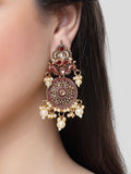 Karatcart Gold Plated Maroon Meena Kundan Dangler Earrings for Women