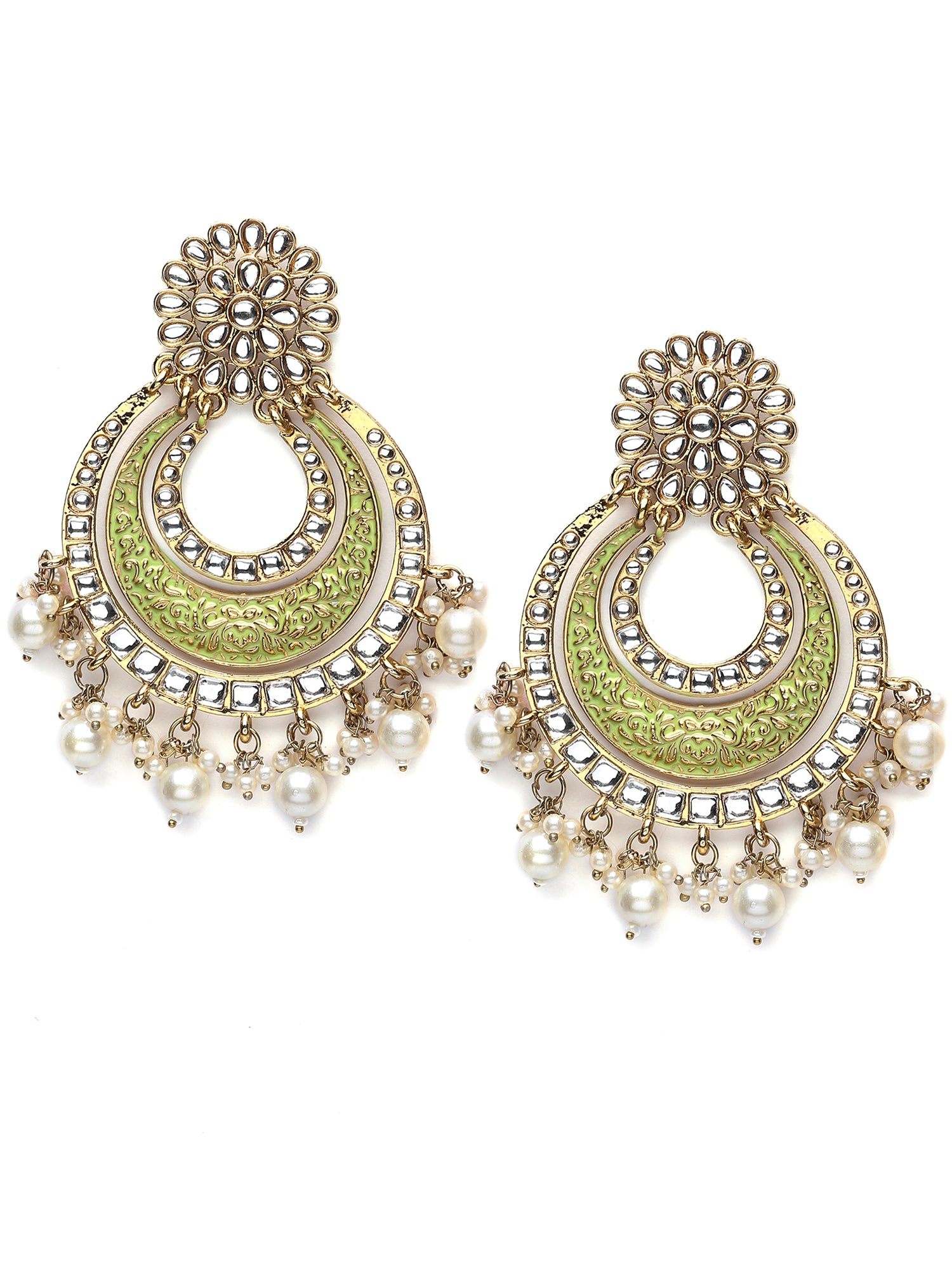 - This is a Light Green Earrings by Brand Karatcart which has Enamel stones.This is Gold Plated. We at KARATCART understand your desire to look the best on any day & we thrive in making any day an occasion. Every individual at Karatcart carries a passion for jewellery and it reflects in our beautiful designs as well as in our breathtaking craftsmanship. We create unique jewellery so you can make heads turn..