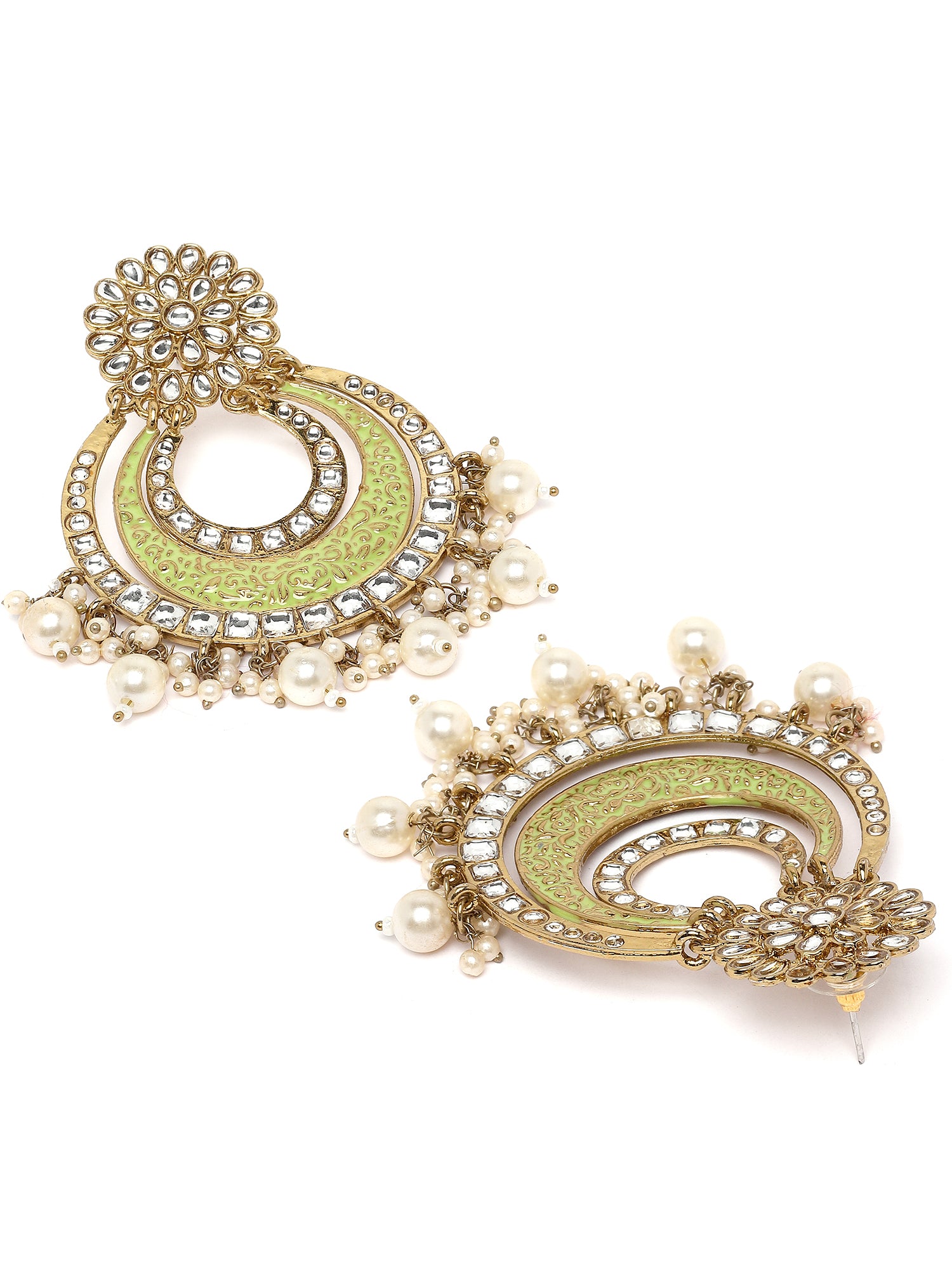 Karatcart Gold Plated Light Green Meena Kundan Chandbali Earrings for Women