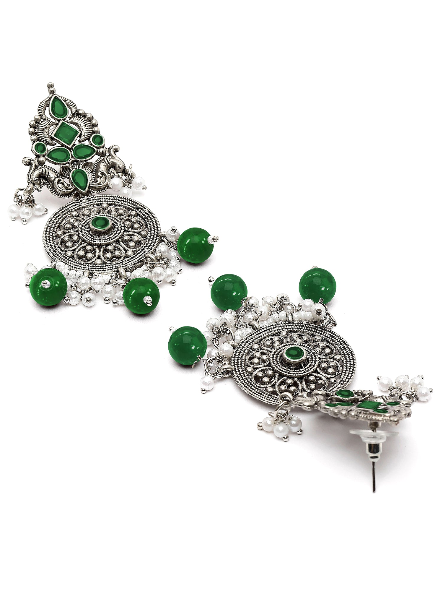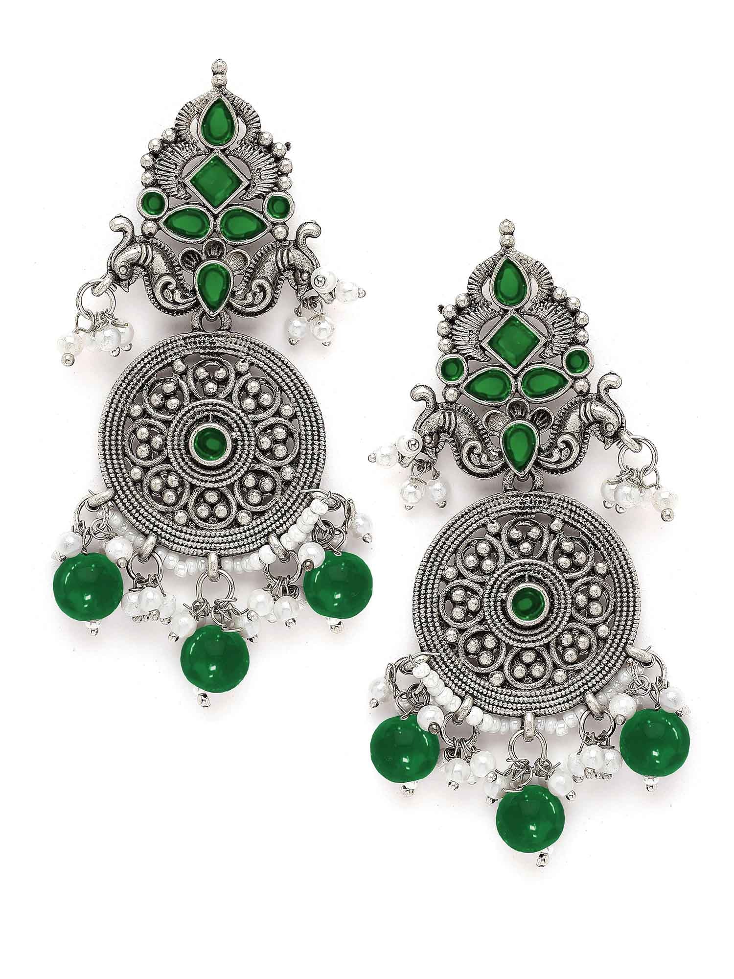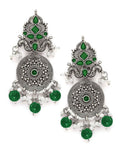 Karatcart Oxidised Silver Green Stone Chakra Design Dangler Earrings for Women