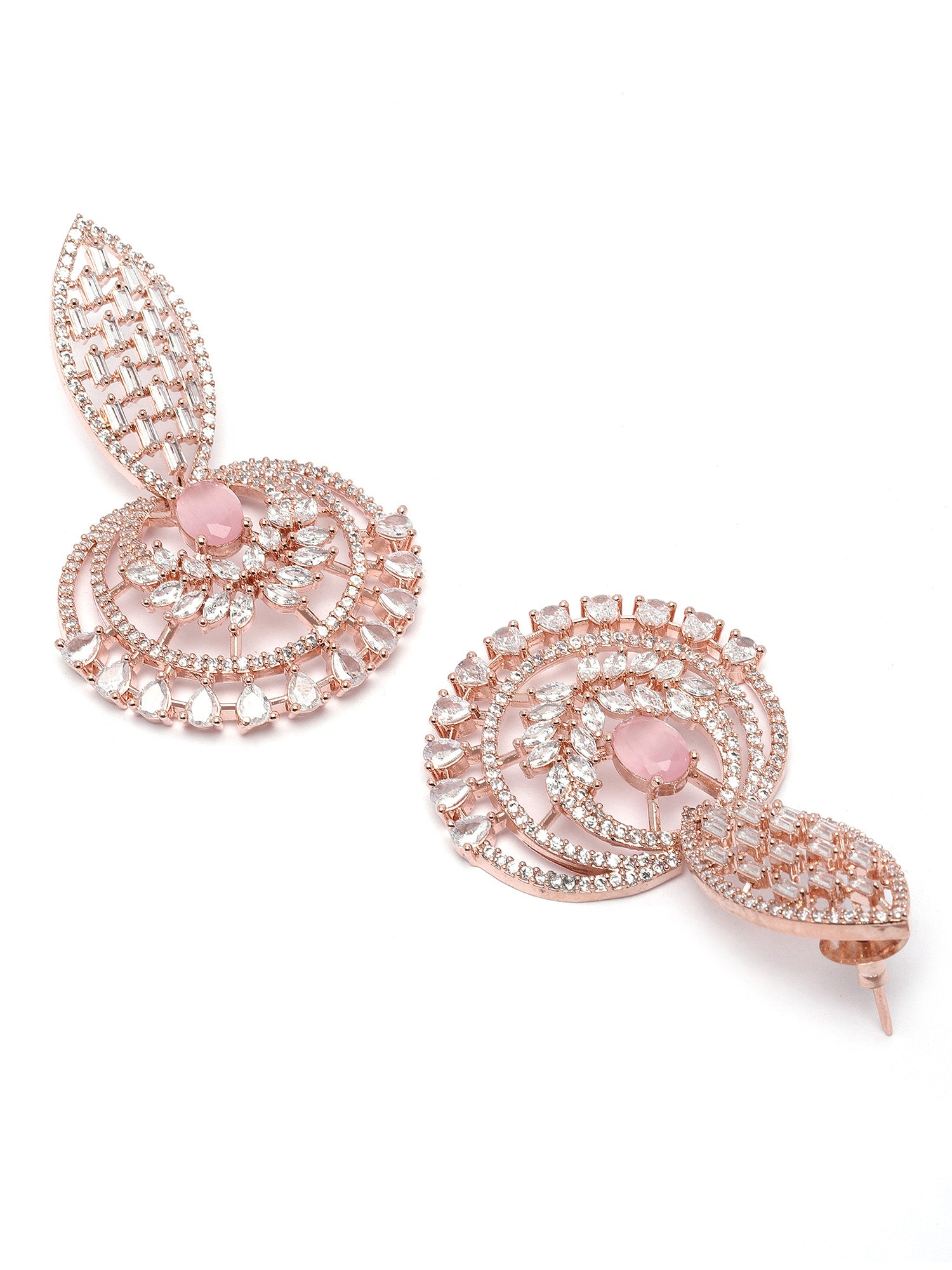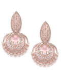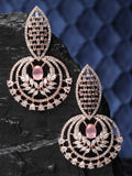 Karatcart Rose-Gold Plated Pink Cubic Zirconia Studded Drop Earrings for Women