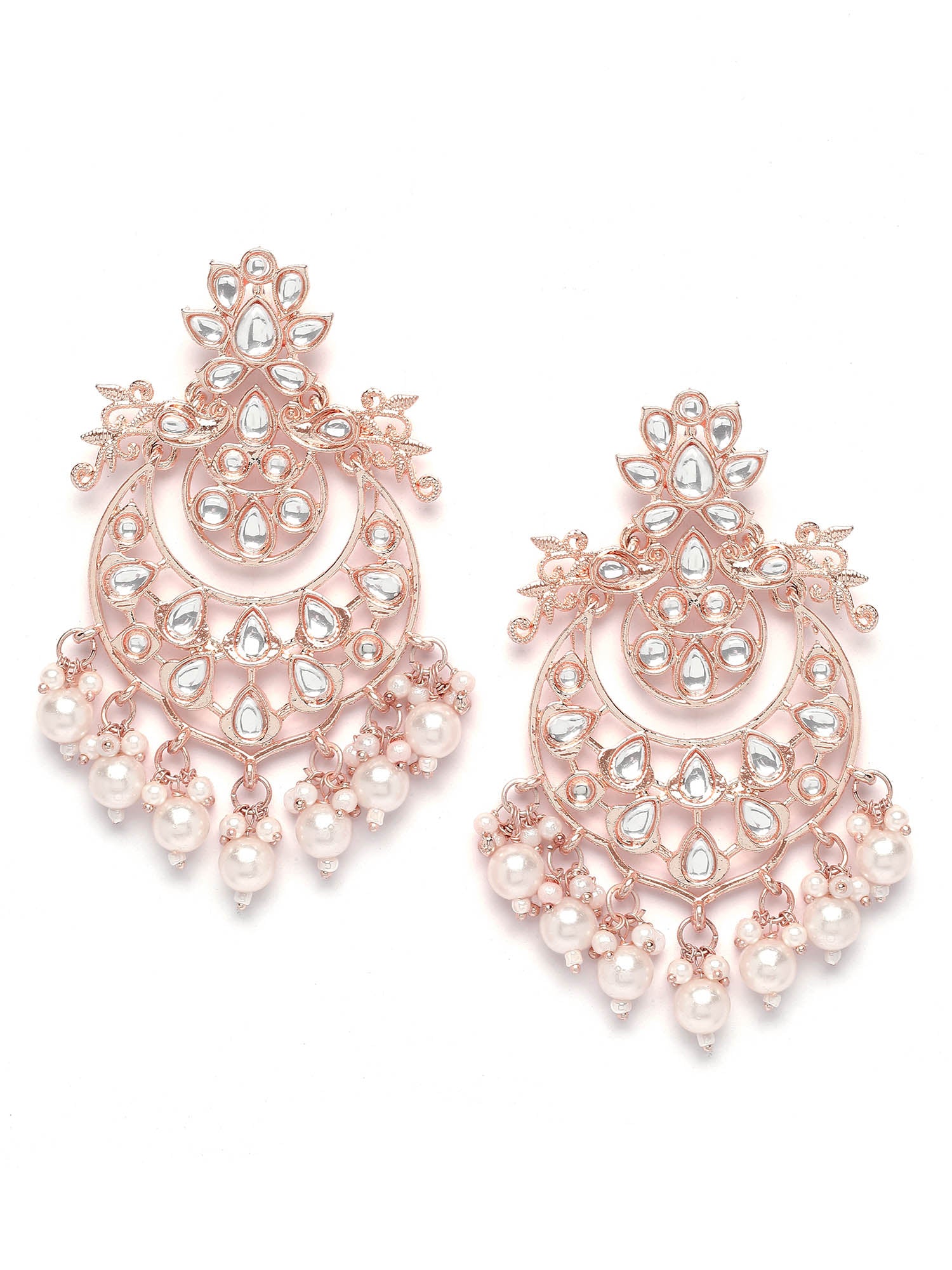 Karatcart Rose Gold Plated Pearl & Kundan Studded Dangler Earrings for Women