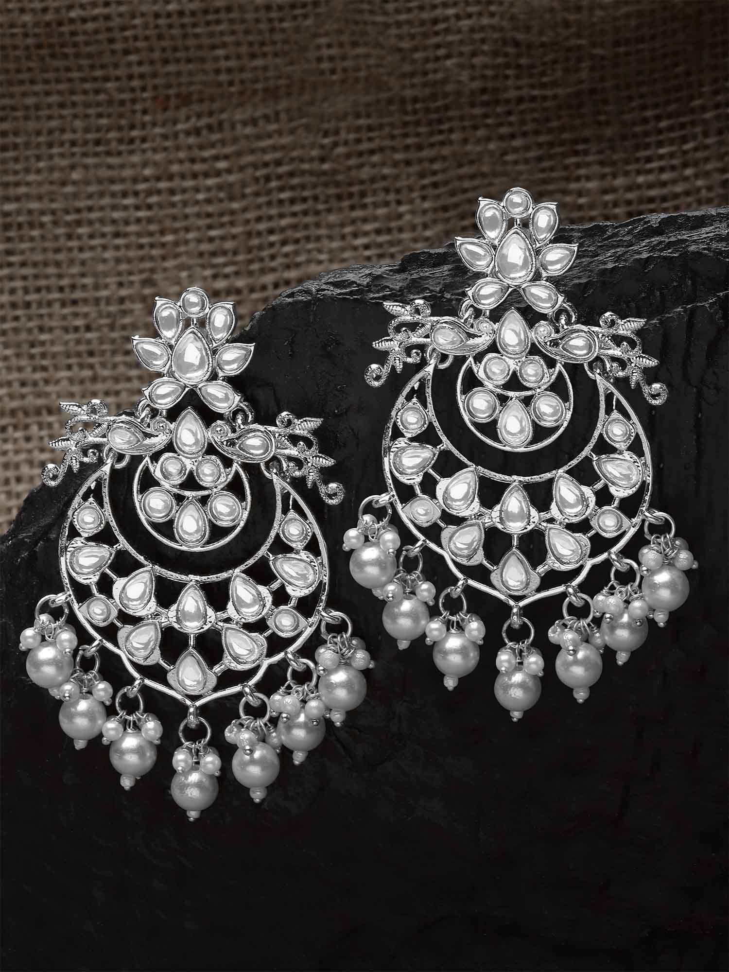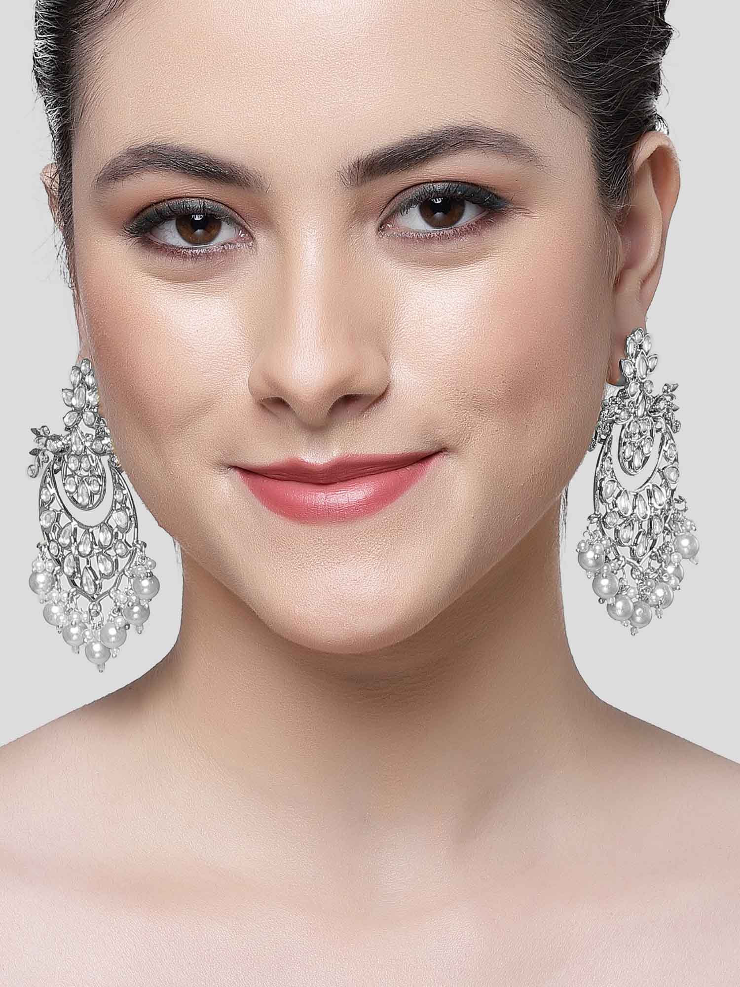 Karatcart Silver Plated Pearl & Kundan Studded Dangler Earrings for Women
