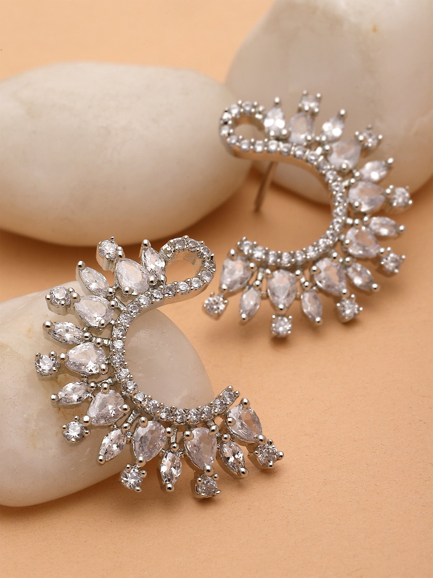 - This is a Silver Earrings by Brand Karatcart which has American Diamond stones.This is Silver Plated. We at KARATCART understand your desire to look the best on any day & we thrive in making any day an occasion. Every individual at Karatcart carries a passion for jewellery and it reflects in our beautiful designs as well as in our breathtaking craftsmanship. We create unique jewellery so you can make heads turn..
