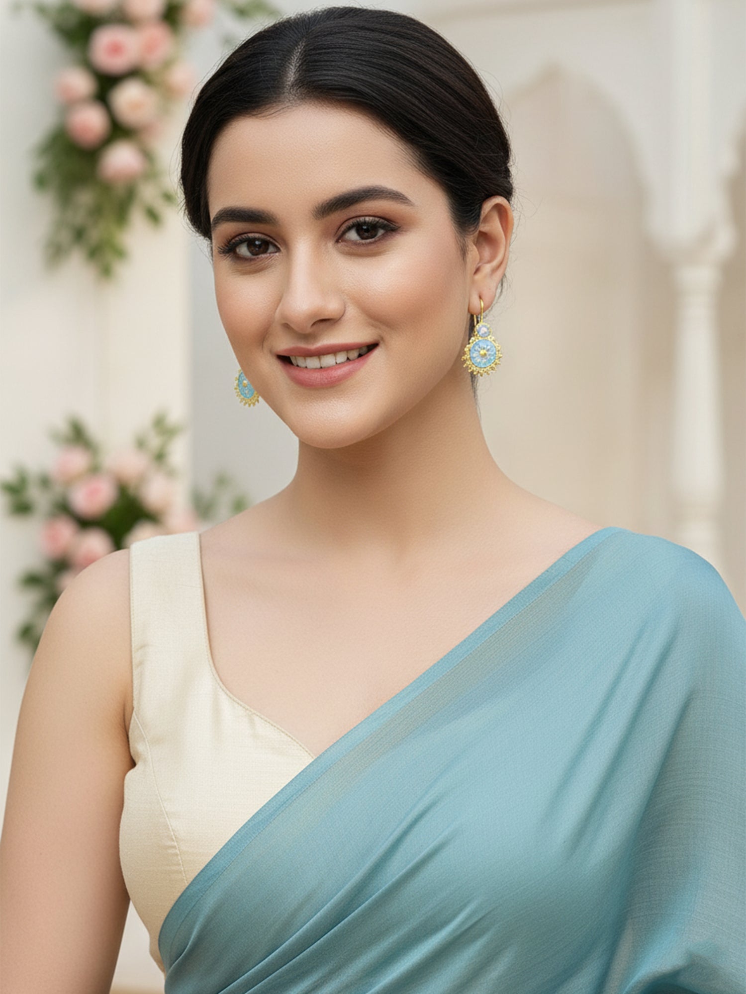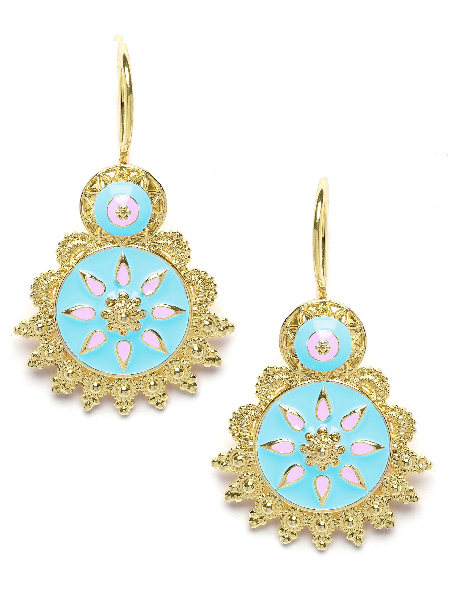- This is a Light Blue and Pink Earrings by Brand Karatcart which has Enamel stones.This is Gold Plated. We at KARATCART understand your desire to look the best on any day & we thrive in making any day an occasion. Every individual at Karatcart carries a passion for jewellery and it reflects in our beautiful designs as well as in our breathtaking craftsmanship. We create unique jewellery so you can make heads turn..