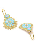 Karatcart Gold Plated Light Blue and Pink Meena Drop Earring for Women
