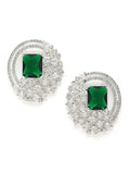 Karatcart Silver Tone Green Cubic Zirconia Stud Earrings
