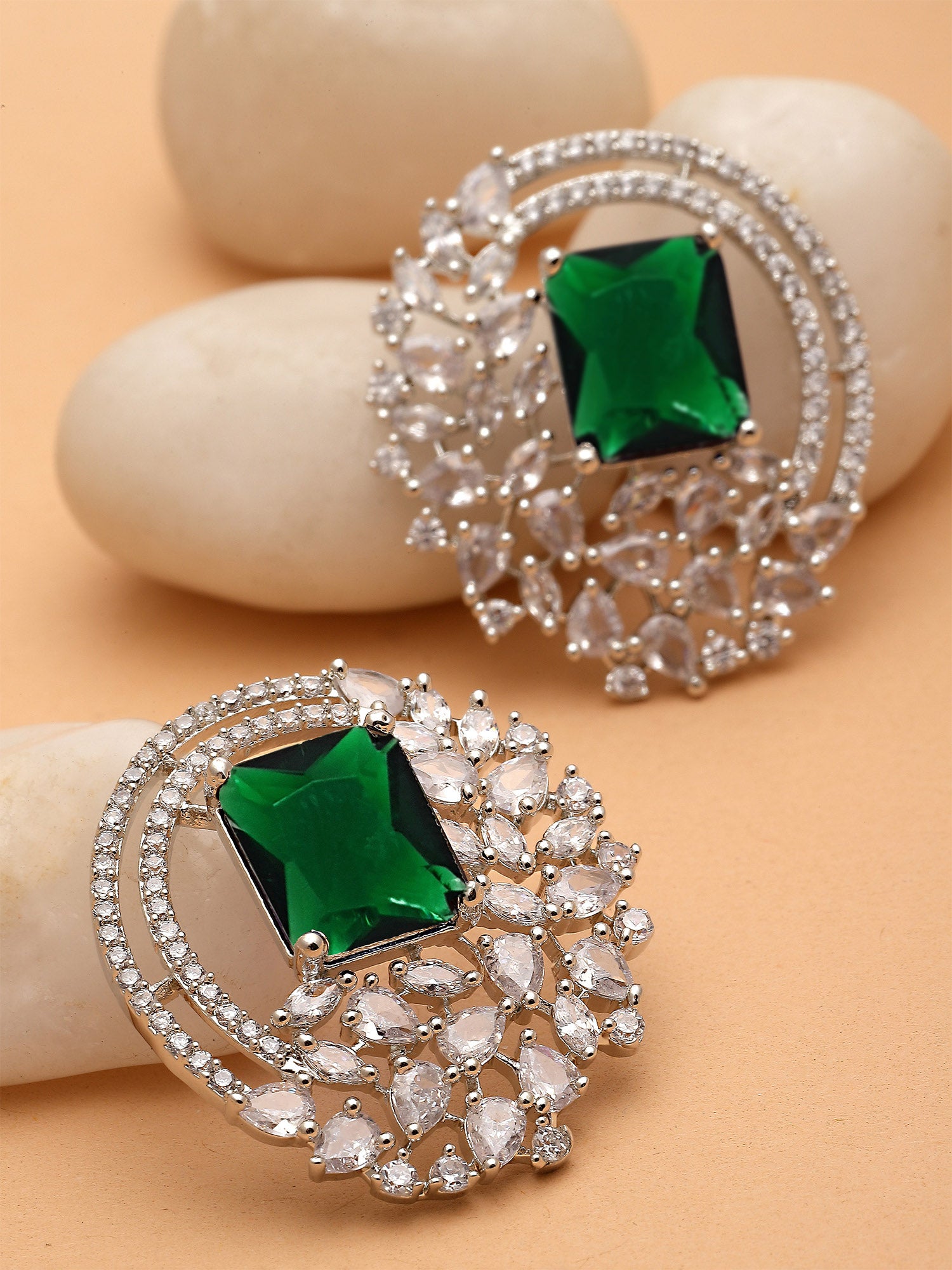 - This is a Green Earrings by Brand Karatcart which has American Diamond stones.This is Silver Plated. We at KARATCART understand your desire to look the best on any day & we thrive in making any day an occasion. Every individual at Karatcart carries a passion for jewellery and it reflects in our beautiful designs as well as in our breathtaking craftsmanship. We create unique jewellery so you can make heads turn..