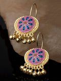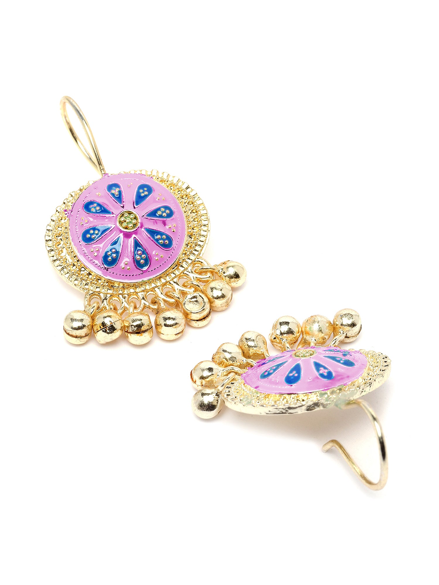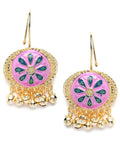 Karatcart Gold Plated Pink and Blue Meena Floral Drop Earring for Women