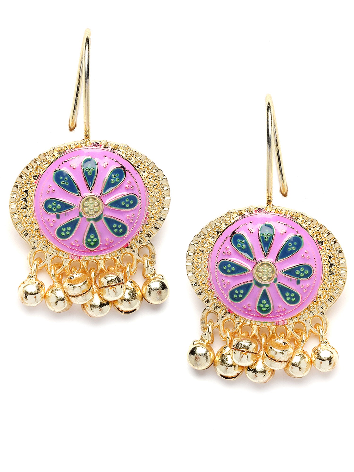 - This is a Pink and Blue Earrings by Brand Karatcart which has Enamel stones.This is Gold Plated. We at KARATCART understand your desire to look the best on any day & we thrive in making any day an occasion. Every individual at Karatcart carries a passion for jewellery and it reflects in our beautiful designs as well as in our breathtaking craftsmanship. We create unique jewellery so you can make heads turn..