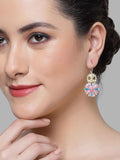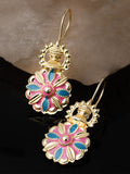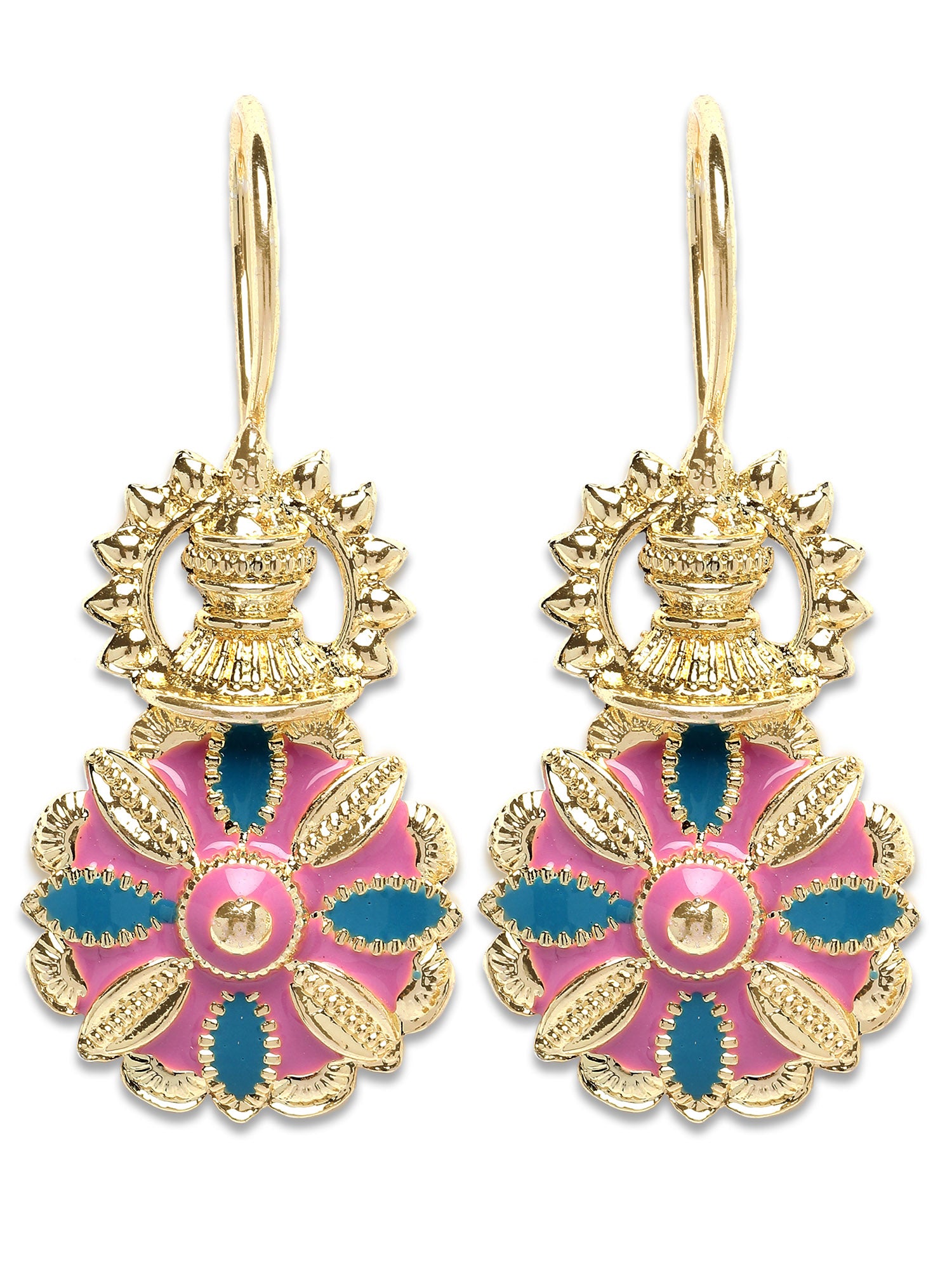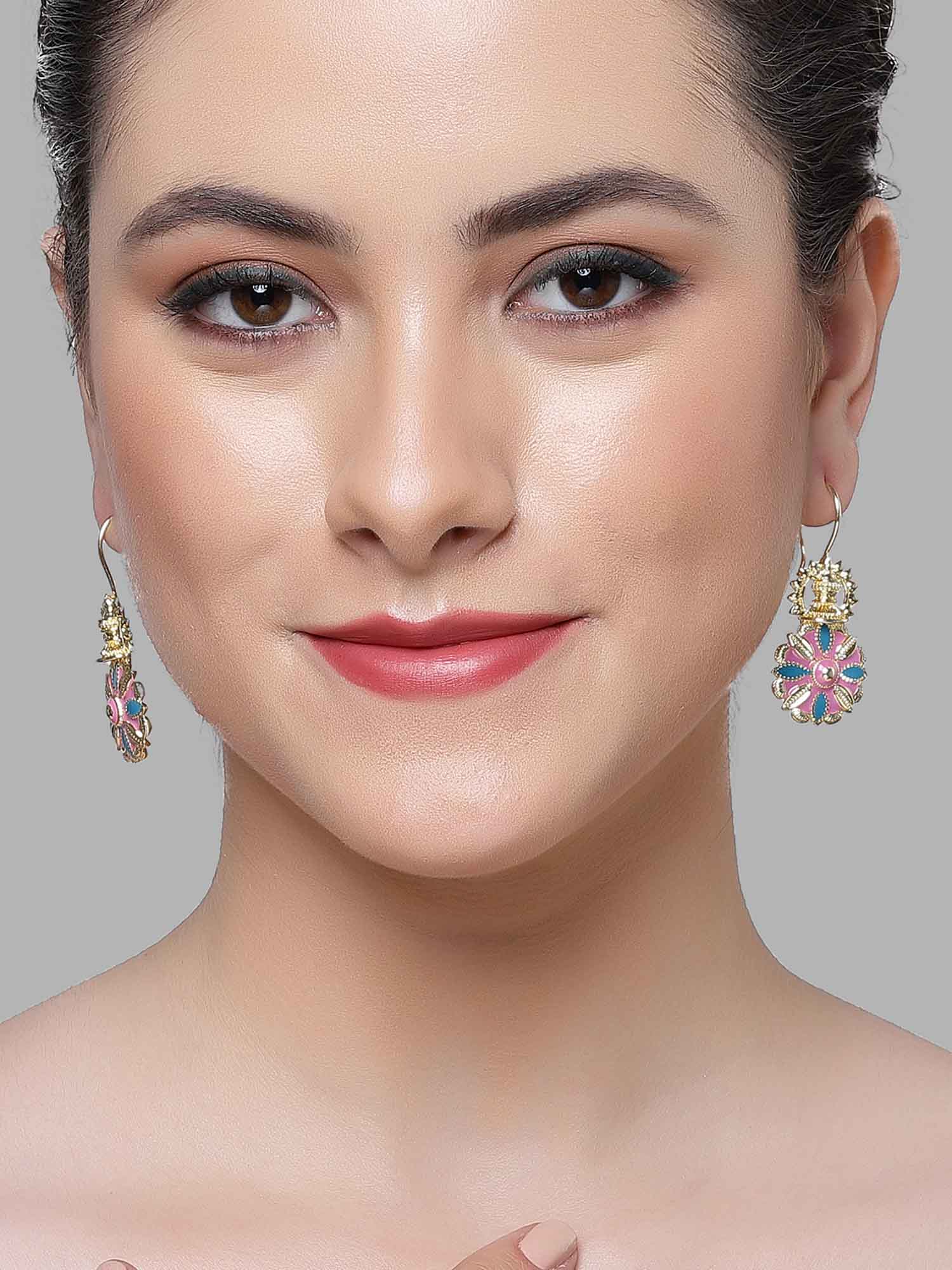 Karatcart Gold Plated Blue and Pink Meena Floral Drop Earring for Women