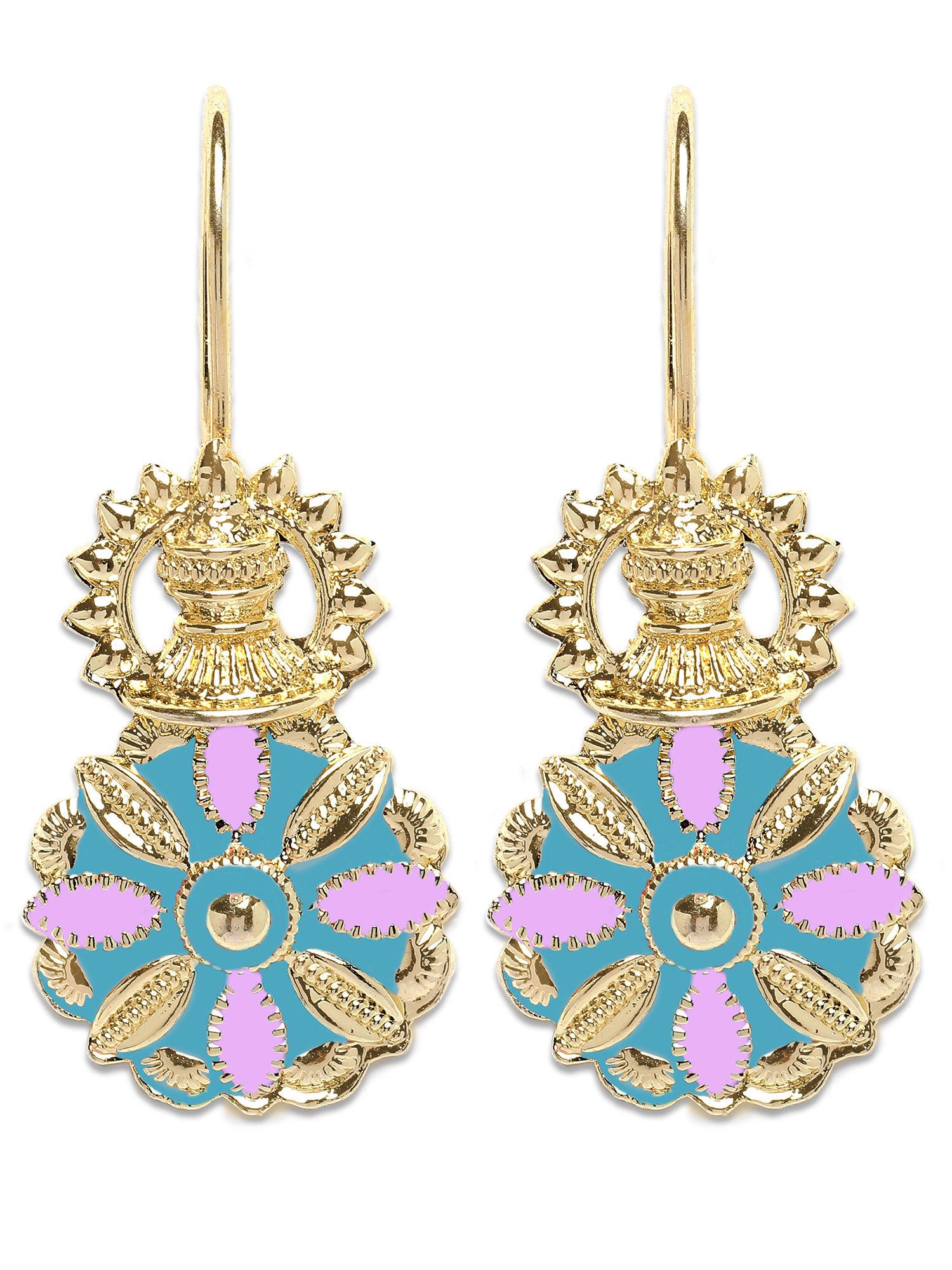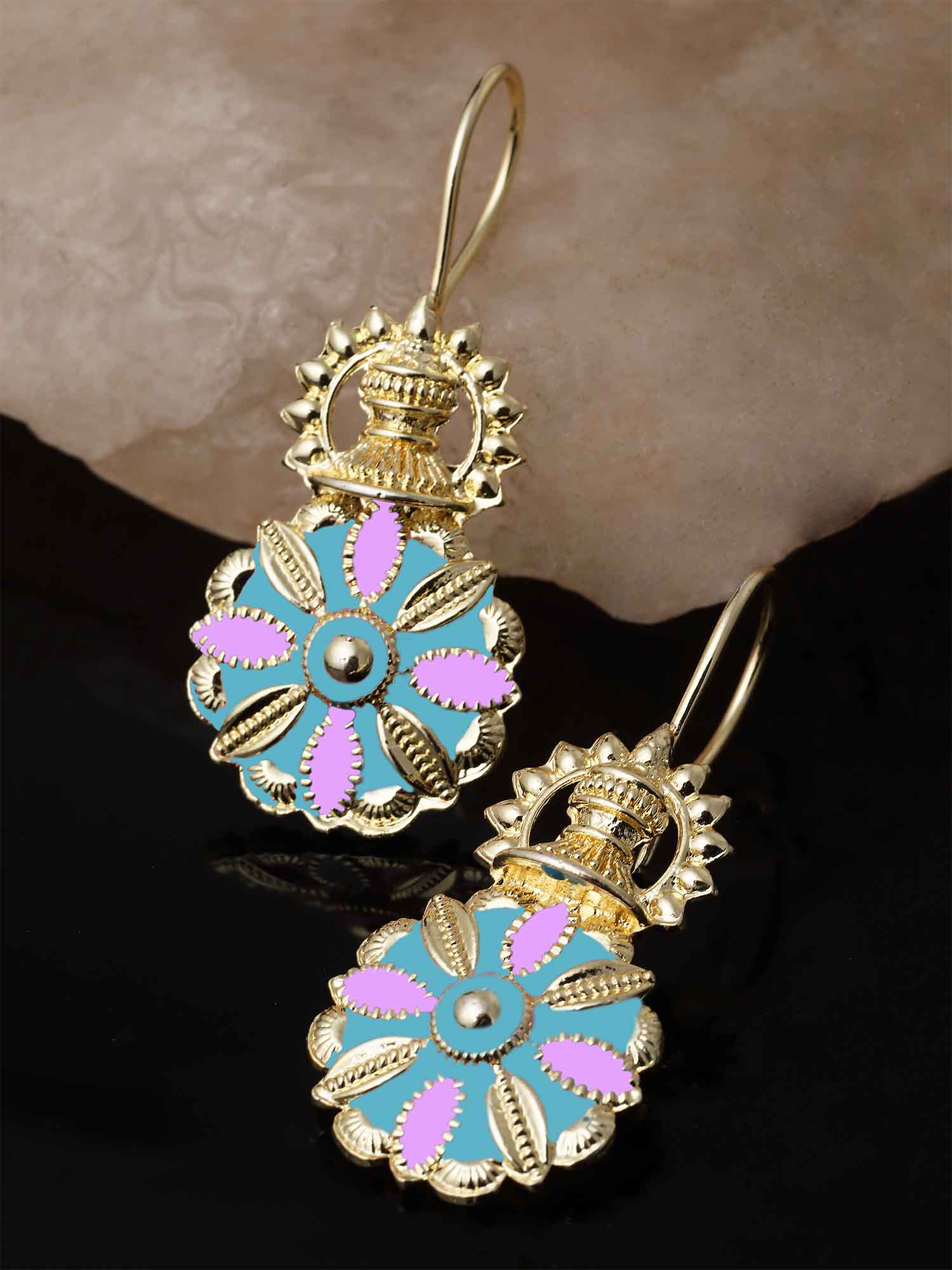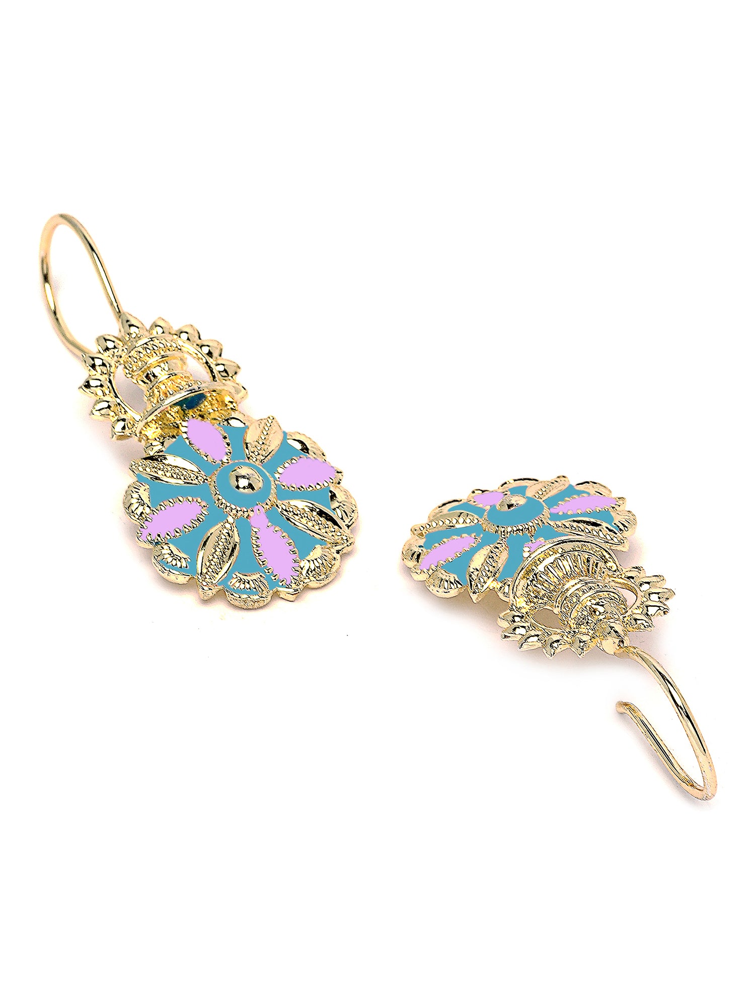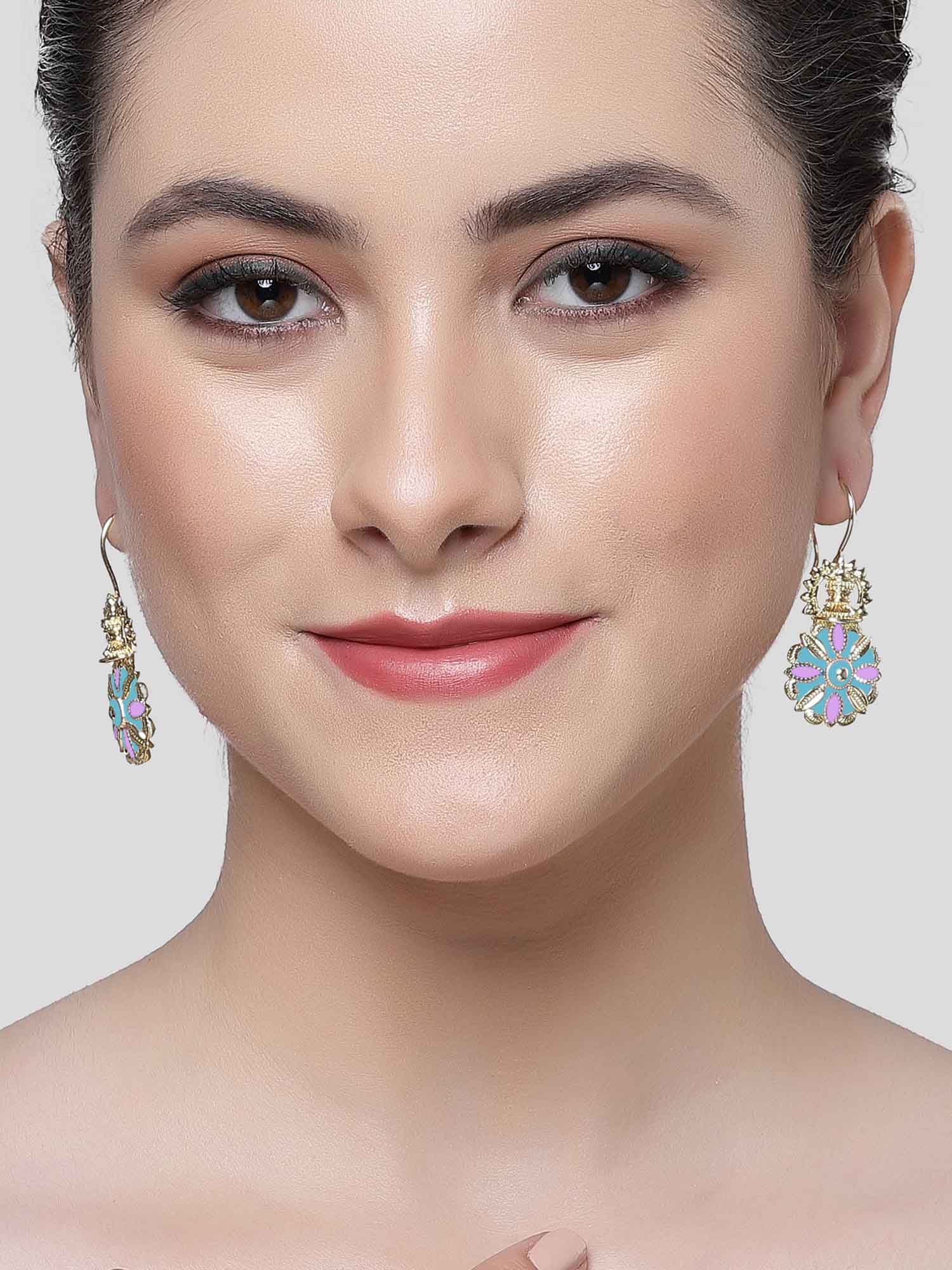 Karatcart Gold Plated Light Blue and Pink Meena Floral Drop Earring for Women
