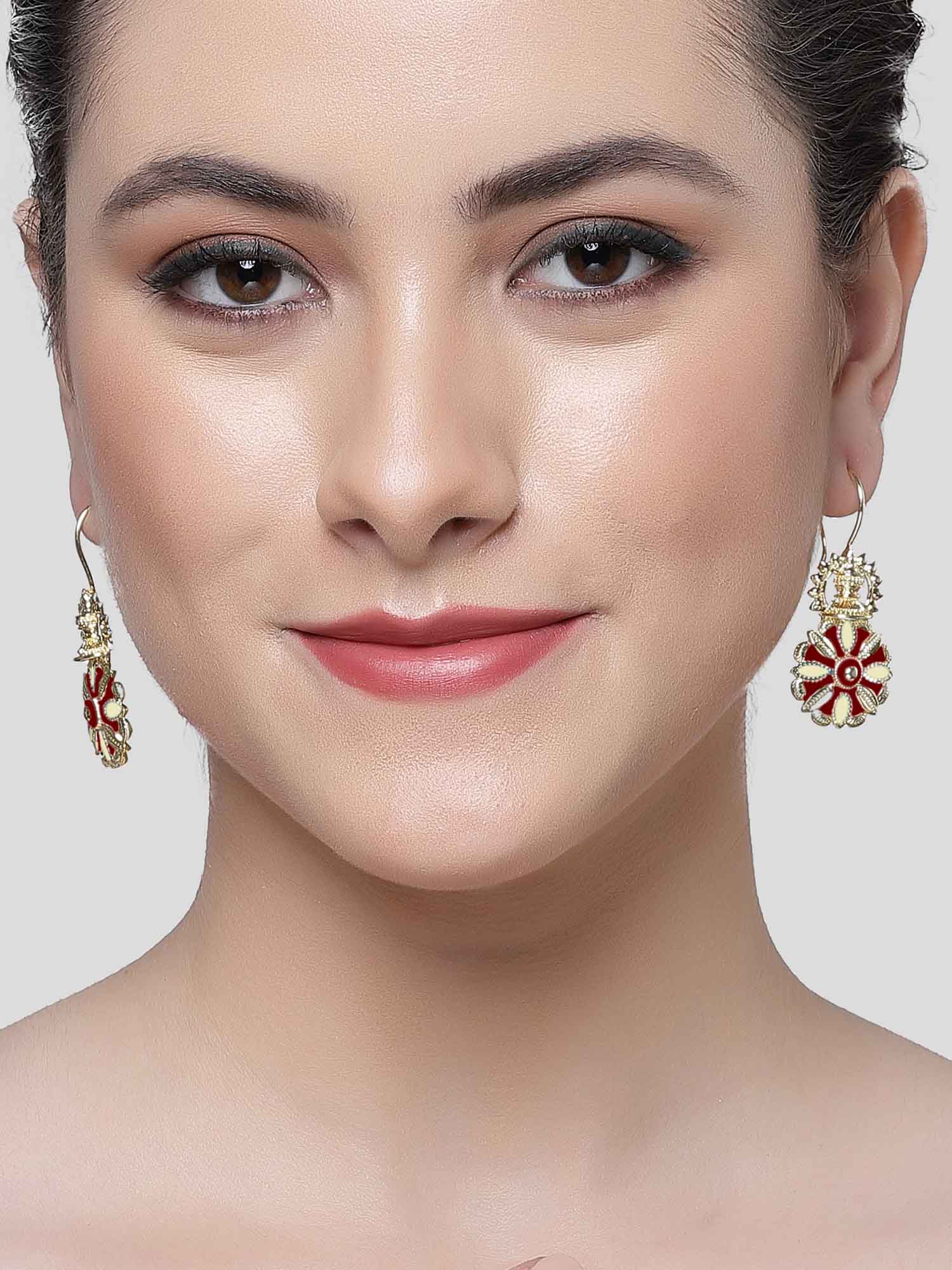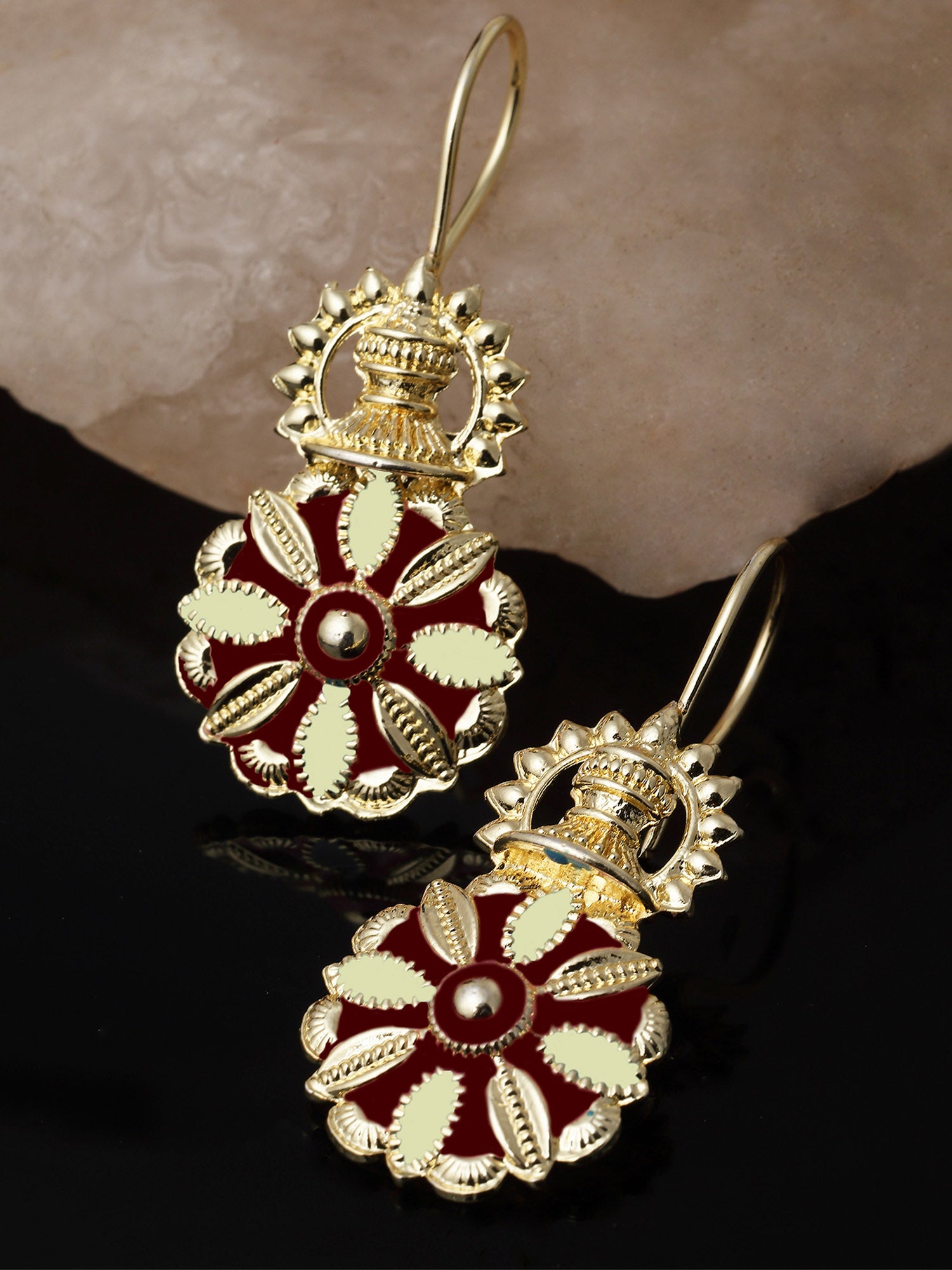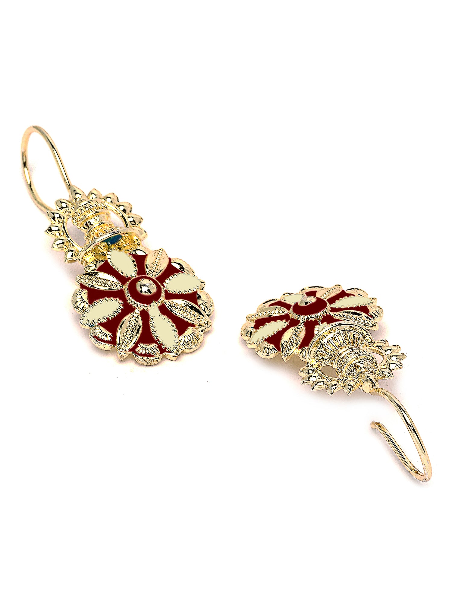 Karatcart Gold Plated Brown and Cream Meena Floral Drop Earring for Women