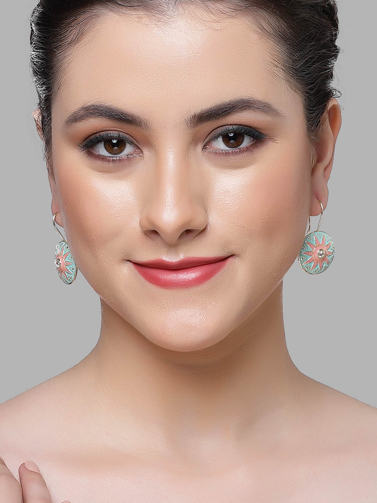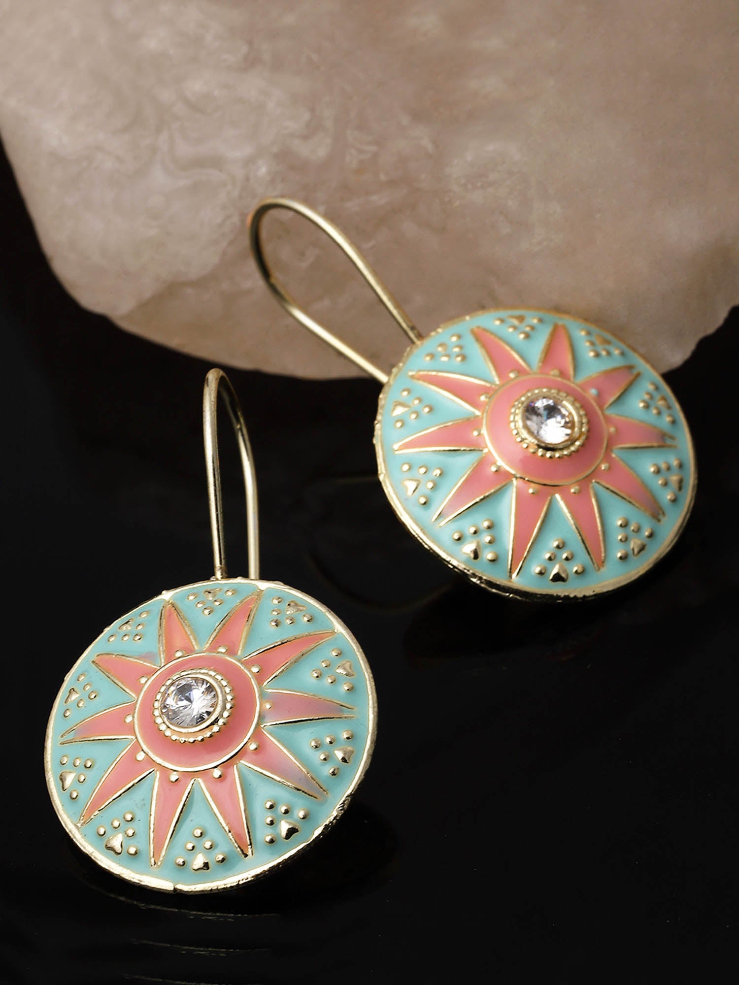 - This is a Pink and Light Blue Earrings by Brand Karatcart which has Enamel stones.This is Gold Plated. We at KARATCART understand your desire to look the best on any day & we thrive in making any day an occasion. Every individual at Karatcart carries a passion for jewellery and it reflects in our beautiful designs as well as in our breathtaking craftsmanship. We create unique jewellery so you can make heads turn..