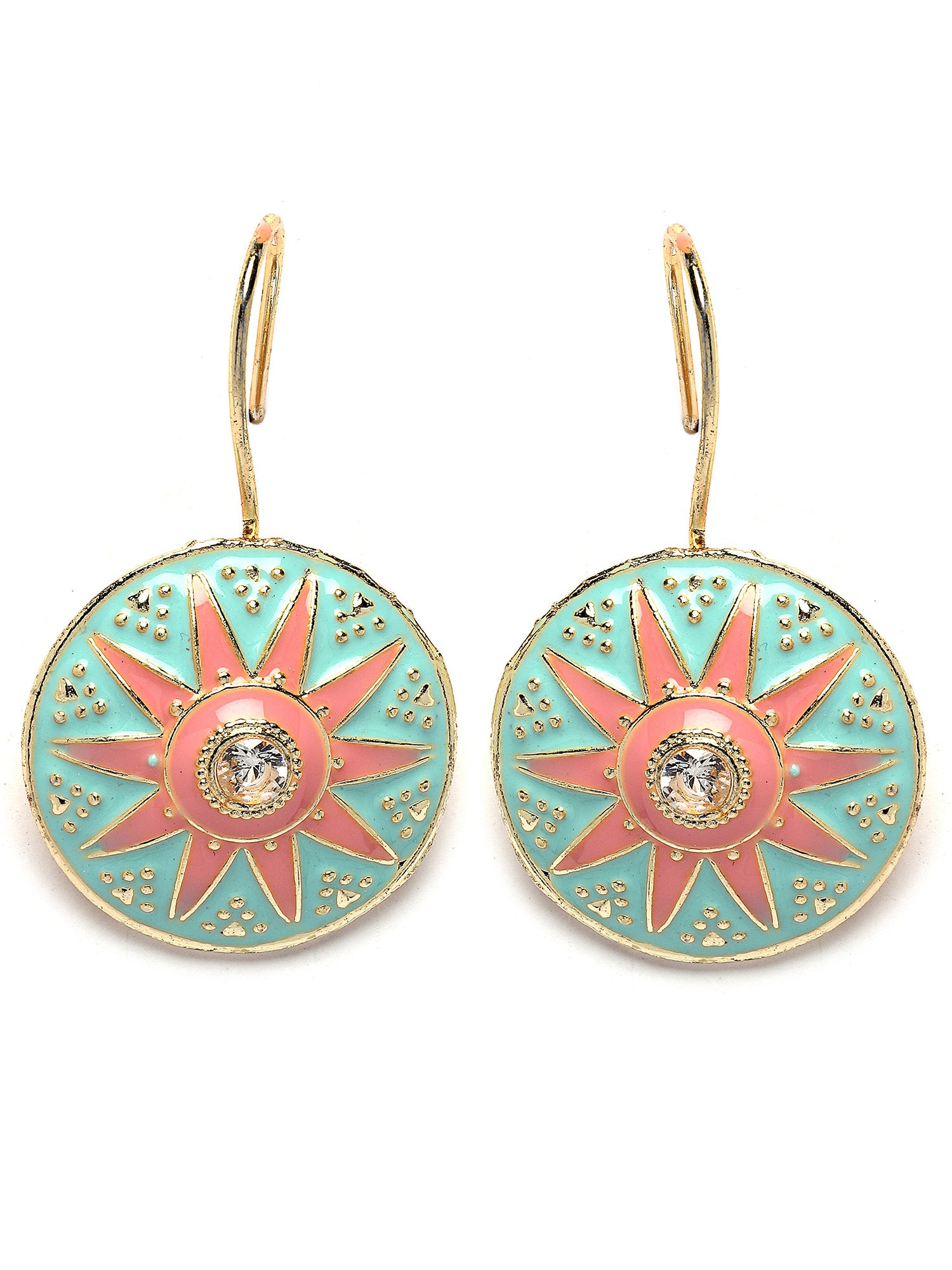 Karatcart Gold Plated Star Design Pink and Light Blue Meena Drop Earrings for Women
