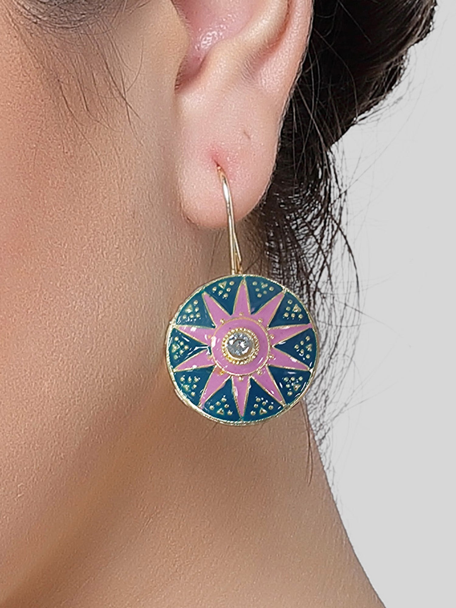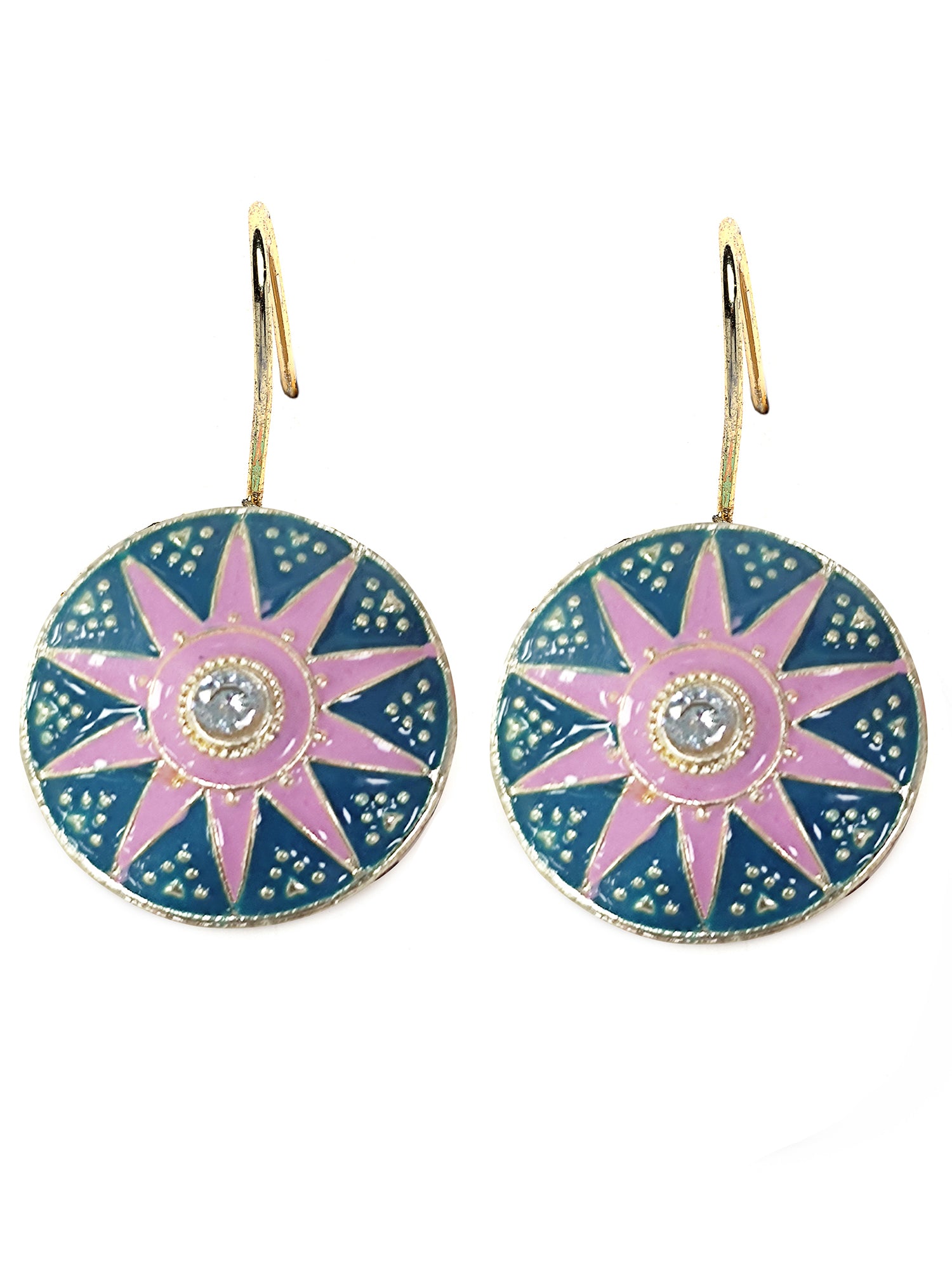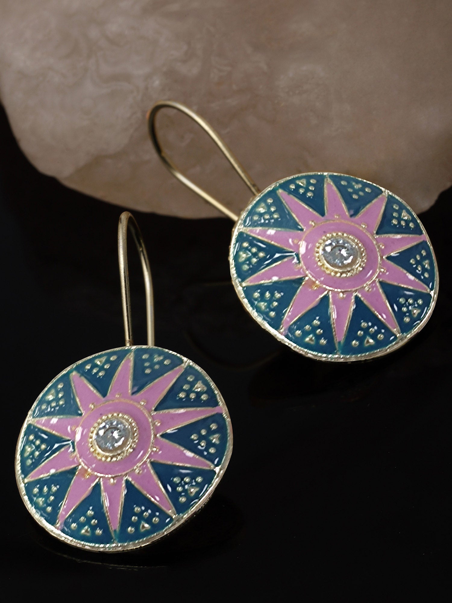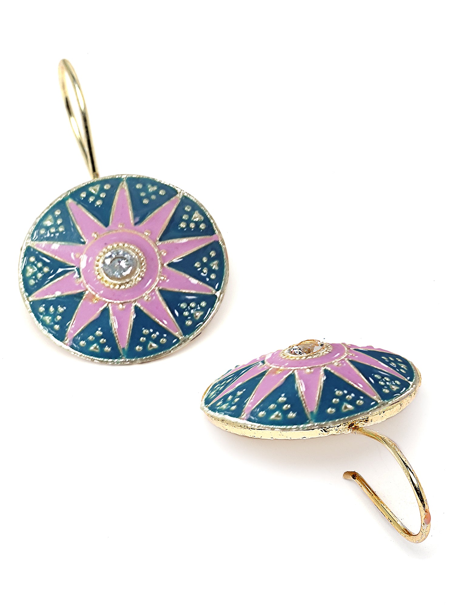 - This is a Pink and Blue Earrings by Brand Karatcart which has Enamel stones.This is Gold Plated. We at KARATCART understand your desire to look the best on any day & we thrive in making any day an occasion. Every individual at Karatcart carries a passion for jewellery and it reflects in our beautiful designs as well as in our breathtaking craftsmanship. We create unique jewellery so you can make heads turn..