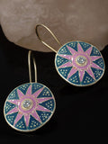 Karatcart Gold Plated Star Design Pink and Blue Meena Drop Earrings for Women