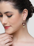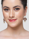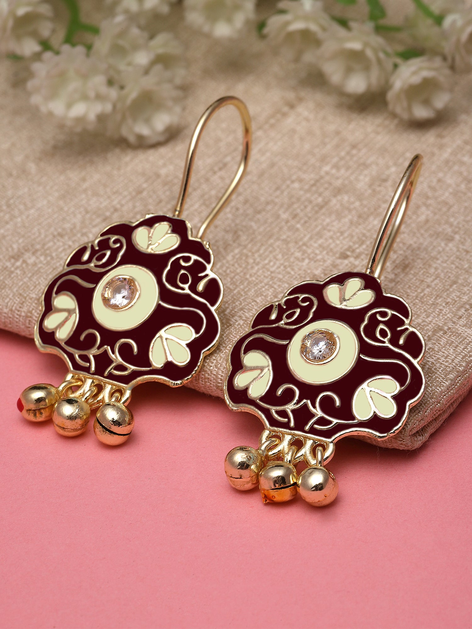 Karatcart Gold Plated Floral Design Brown and Cream Meena Drop Earrings for Women