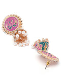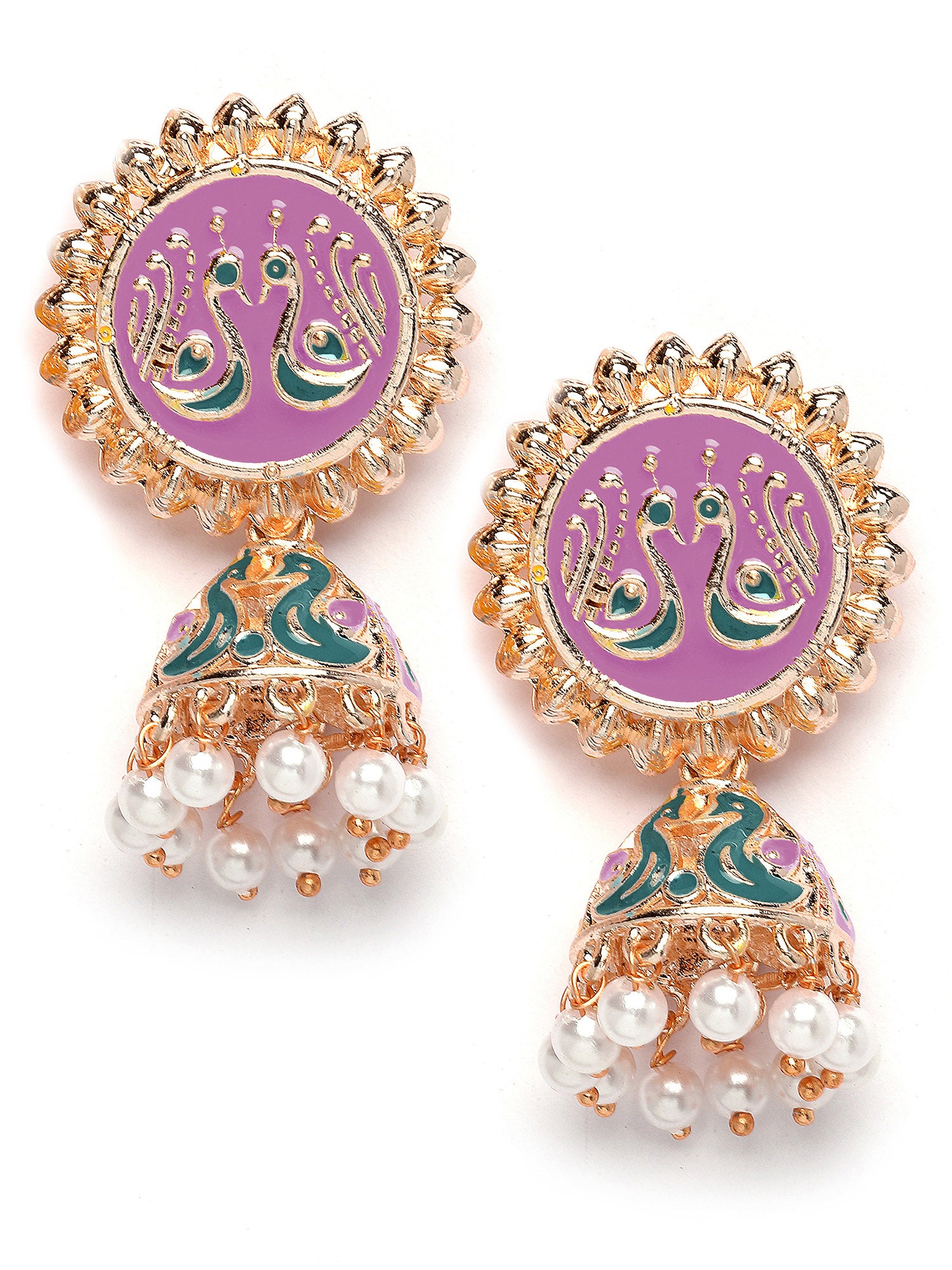 Karatcart Rose Gold Plated Peacock Design Pink and Blue Meena Jhumki Earrings for Women