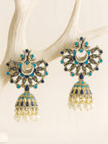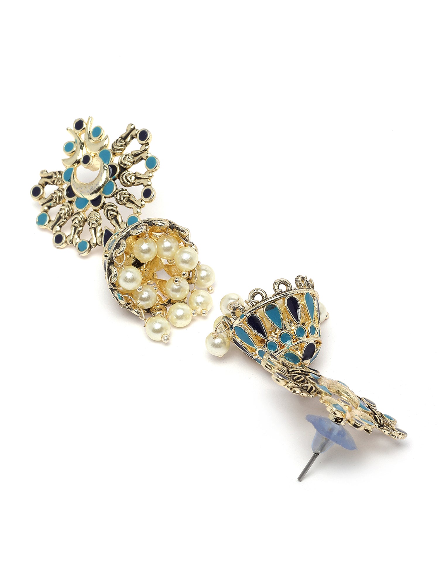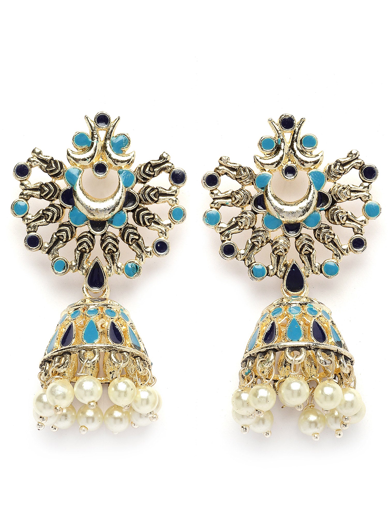 Karatcart Gold Plated Light Blue and Navy Blue Meena Jhumki Earrings for Women