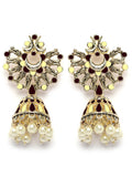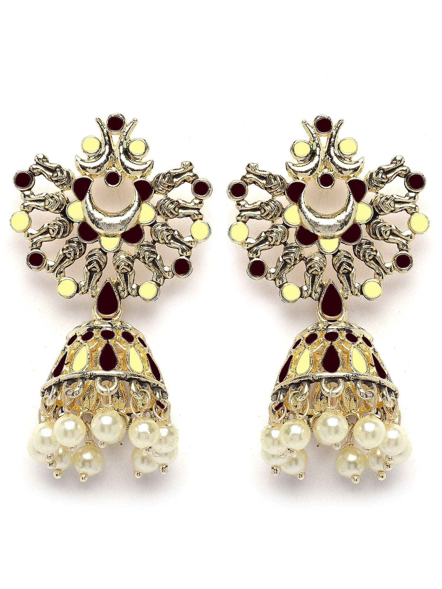 Karatcart Gold Plated Brown and Cream Meena Jhumki Earrings for Women