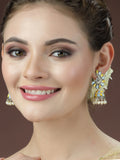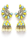 Karatcart Gold Plated Light Blue and Yellow Meena Jhumki Earrings for Women